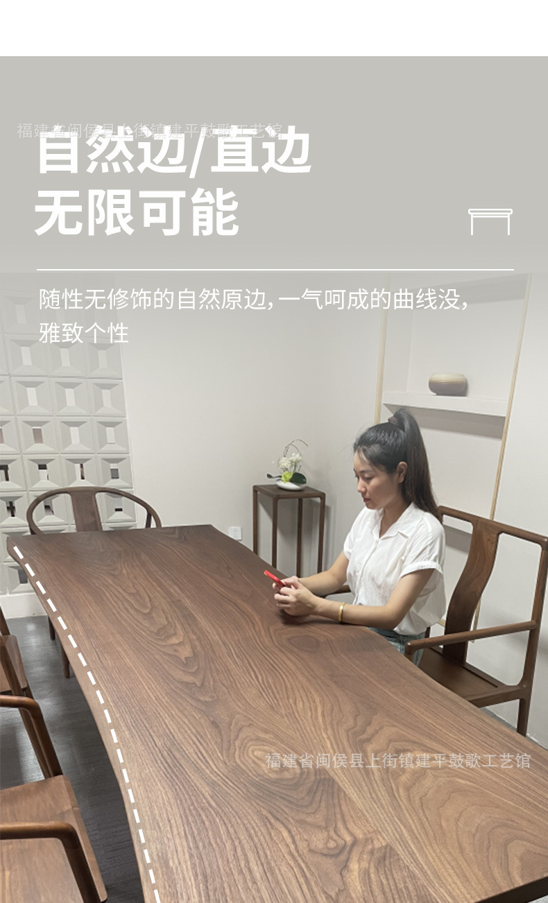 Большой стол из ореха, стол для чая, цельный деревянный стол, простой обеденный стол, натуральный край