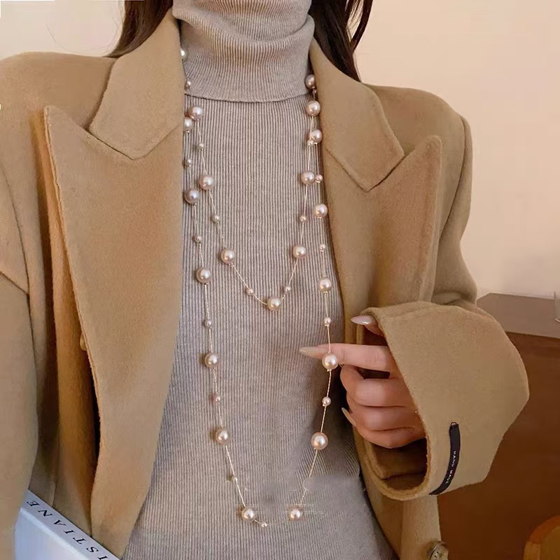 Корейская стильная длинная цепочка, женственная, легкая роскошь, универсальная, высококачественная цепочка для свитера, осенние и зимние аксессуары