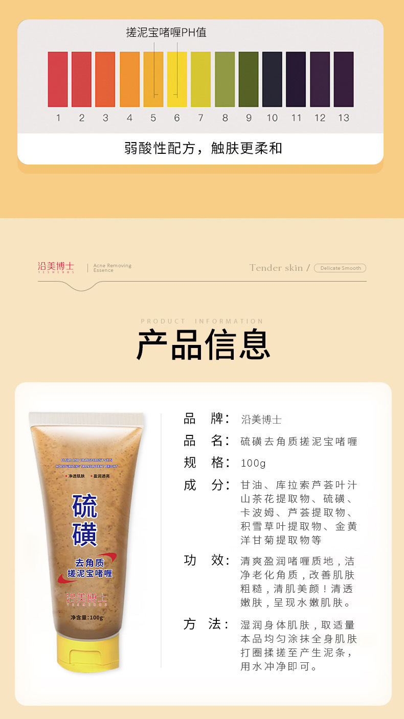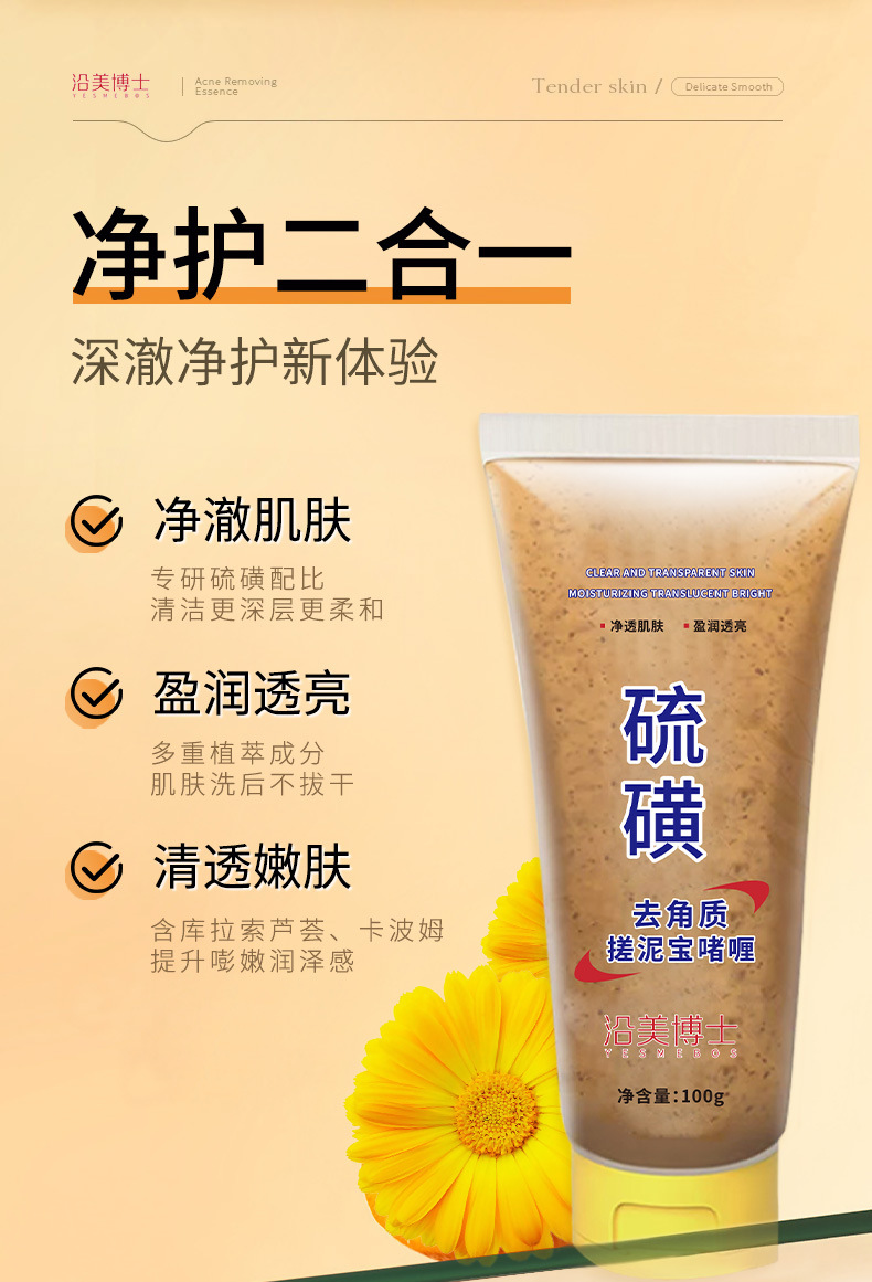 Гель для эксфолиации с серой от доктора Яньмэй глубоко очищает, нежно отшелушивает грязь, не повреждая кожу, очищает и омолаживает кожу, улучшает ее текстуру