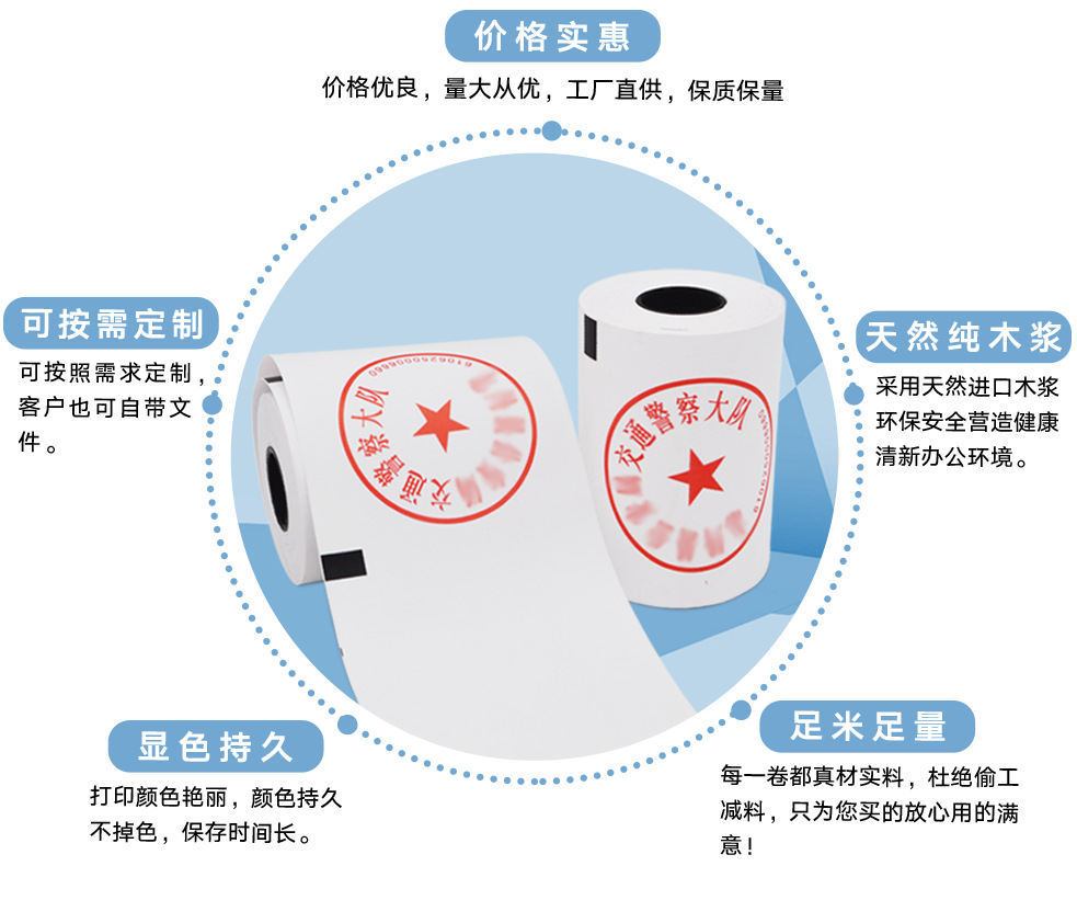 交警执勤现场打印纸,停车小票告知单.(背夹式酒精检测仪打印纸 ,规格44X25),特殊规格可定制。