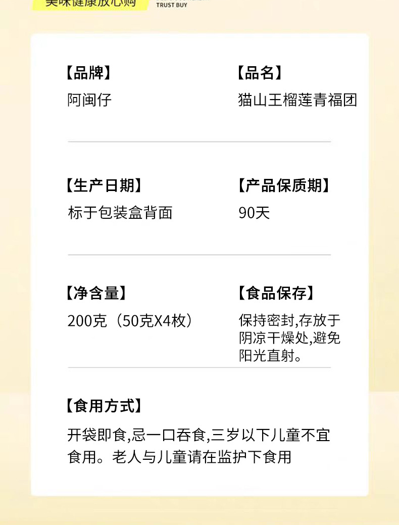 📦 | 50g-200g*3 boxes-mao shan king durian qingfu tuan | ¥39.9 / ≈ 481 ₽ | 32432 | 5925108326251 |
