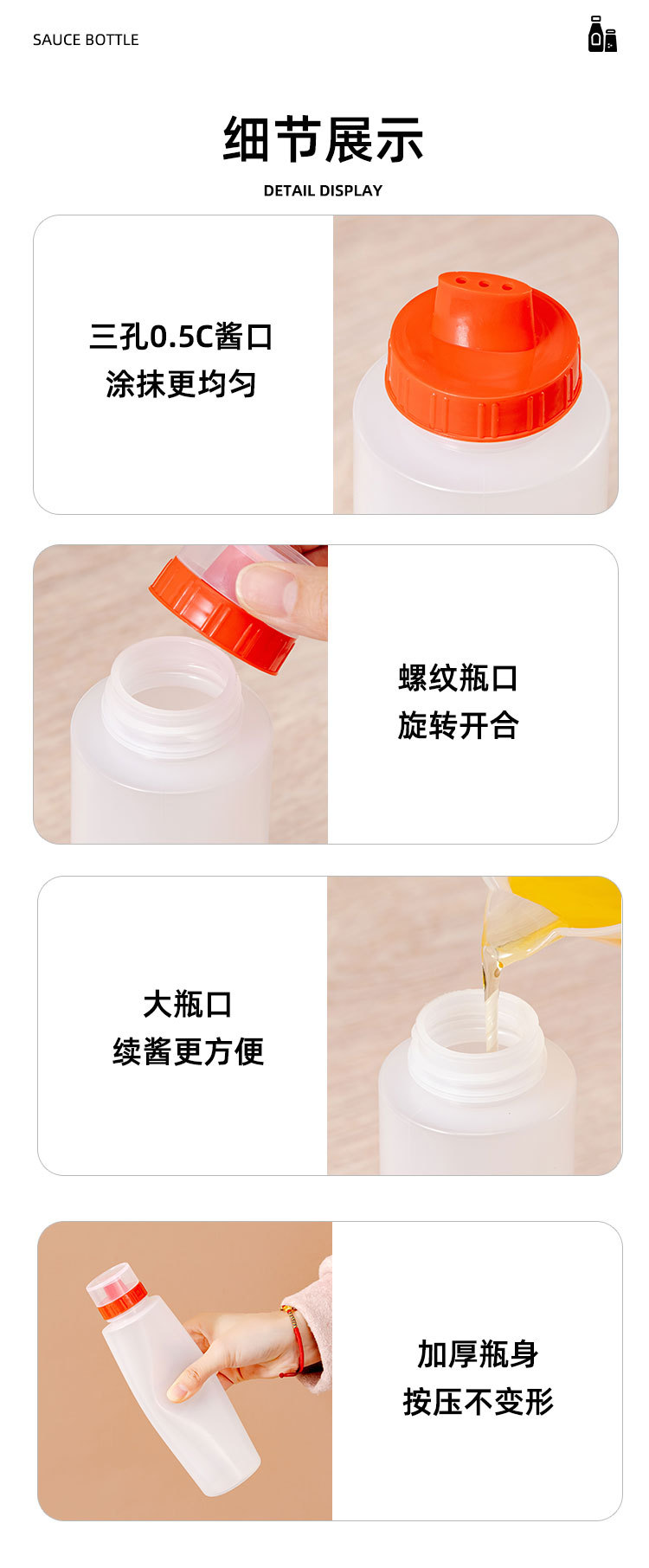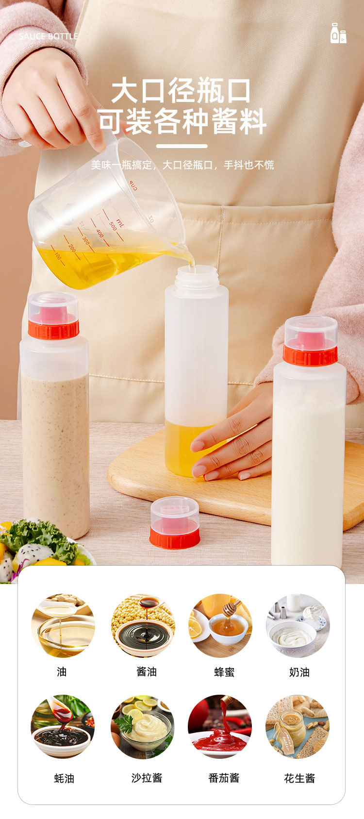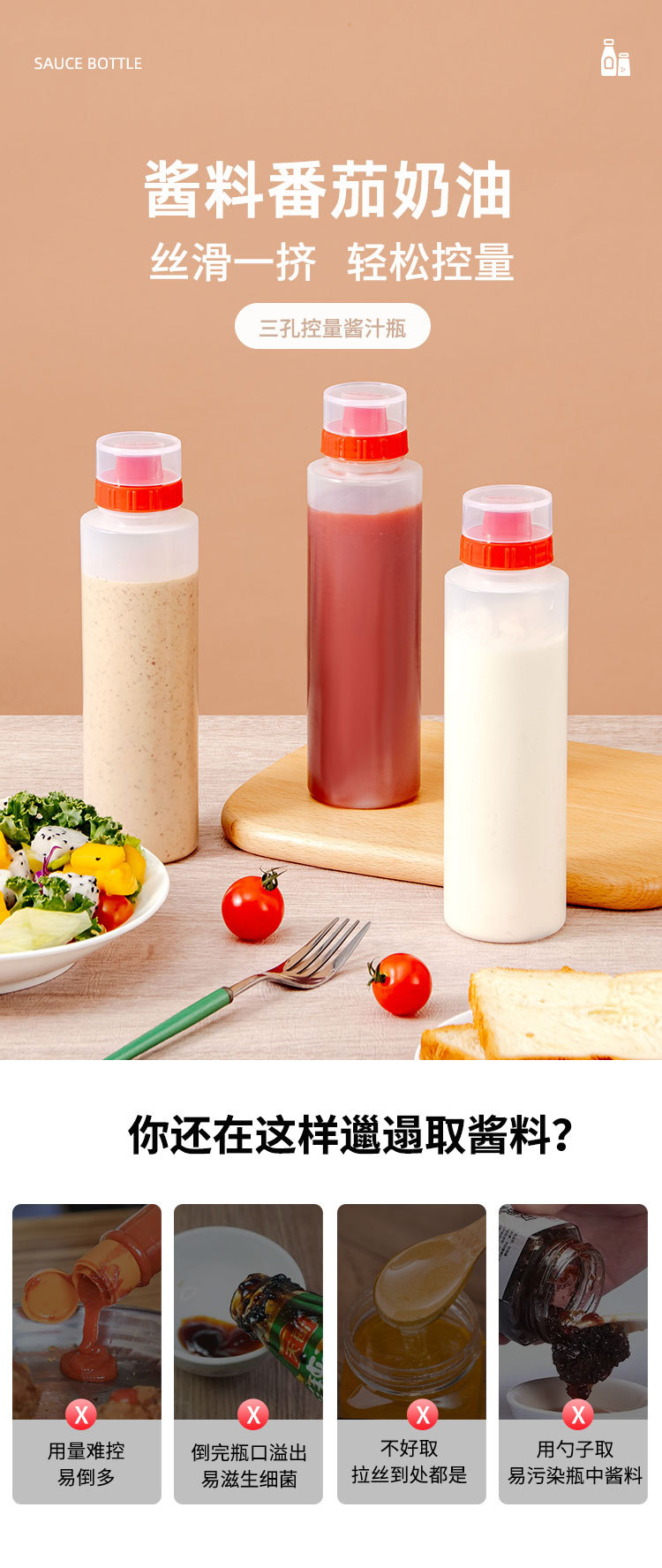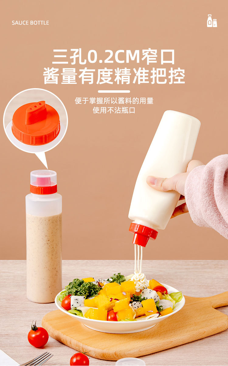 PE бутылка для соуса с тремя отверстиями, контейнер для приправ, бутылка для салата, бутылка для джема, салатная бутылка с тремя носиками, бутылка для крема