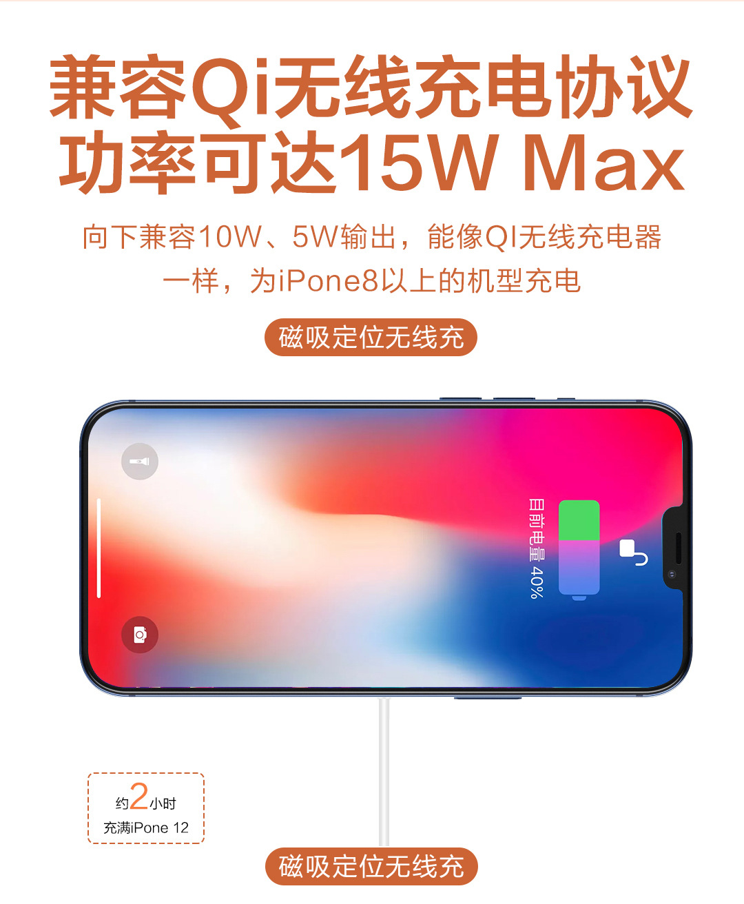 手机磁吸无线充电器,适用于苹果12全系列。真15W带弹窗1:1,含包装。进口贝兰德方案,兼容性强,充电快,质量稳定不发烫。可选PD充电器+磁吸充套装,默认带包装。