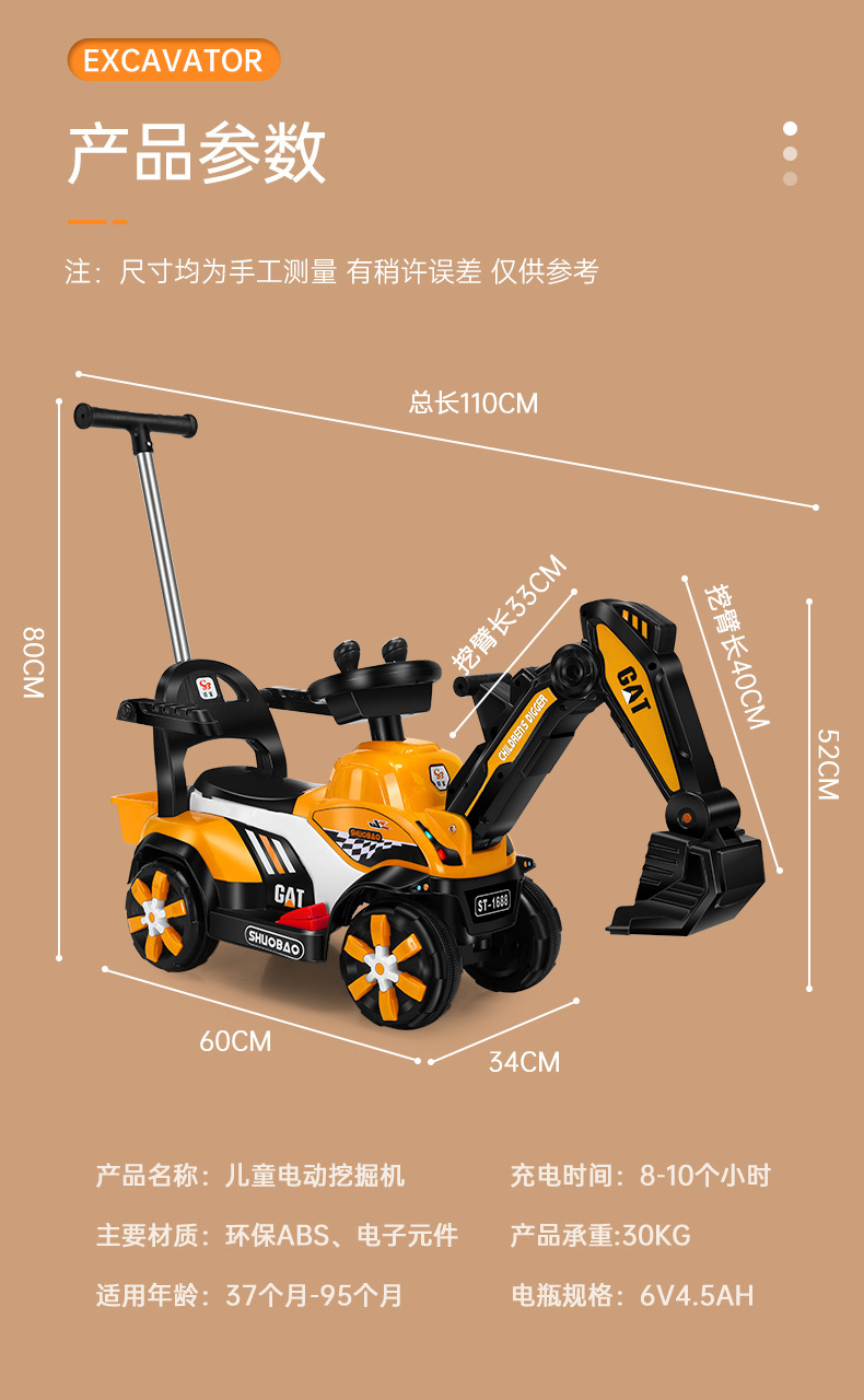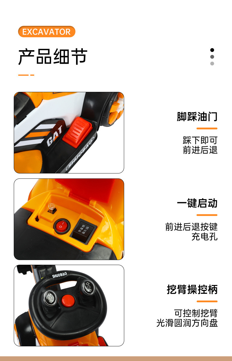 ![]() | Fully electric orange + music and lighting + electric digging arm + push handle + remote control | ¥143.0 / ≈ 1 723 ₽ | 49960 | 5929109351162 | |