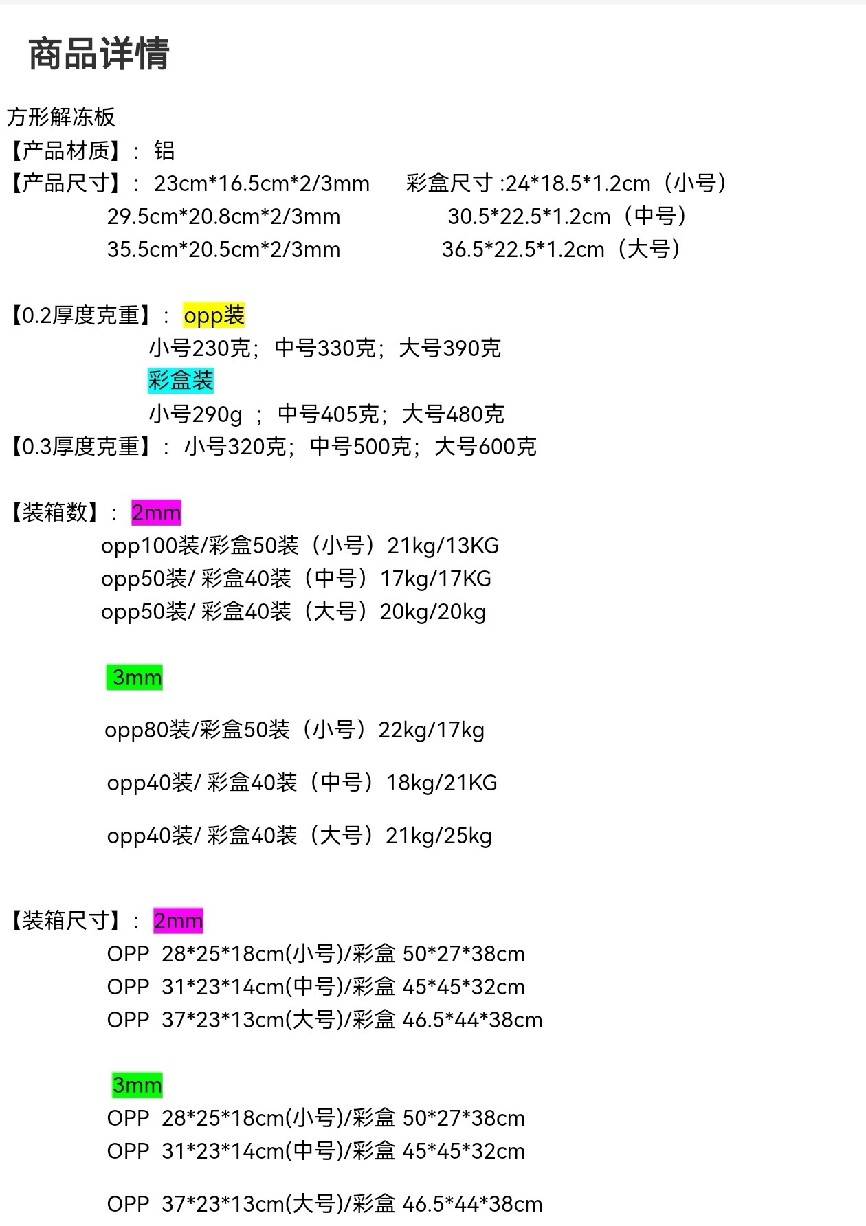 📦 | Thawing plate small size 23*16.5*2mm [color box] | ¥12.35 / ≈ 149 ₽ | 50000 | 5767371268465 | |