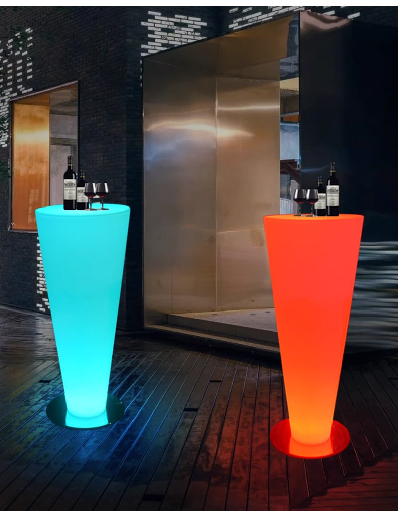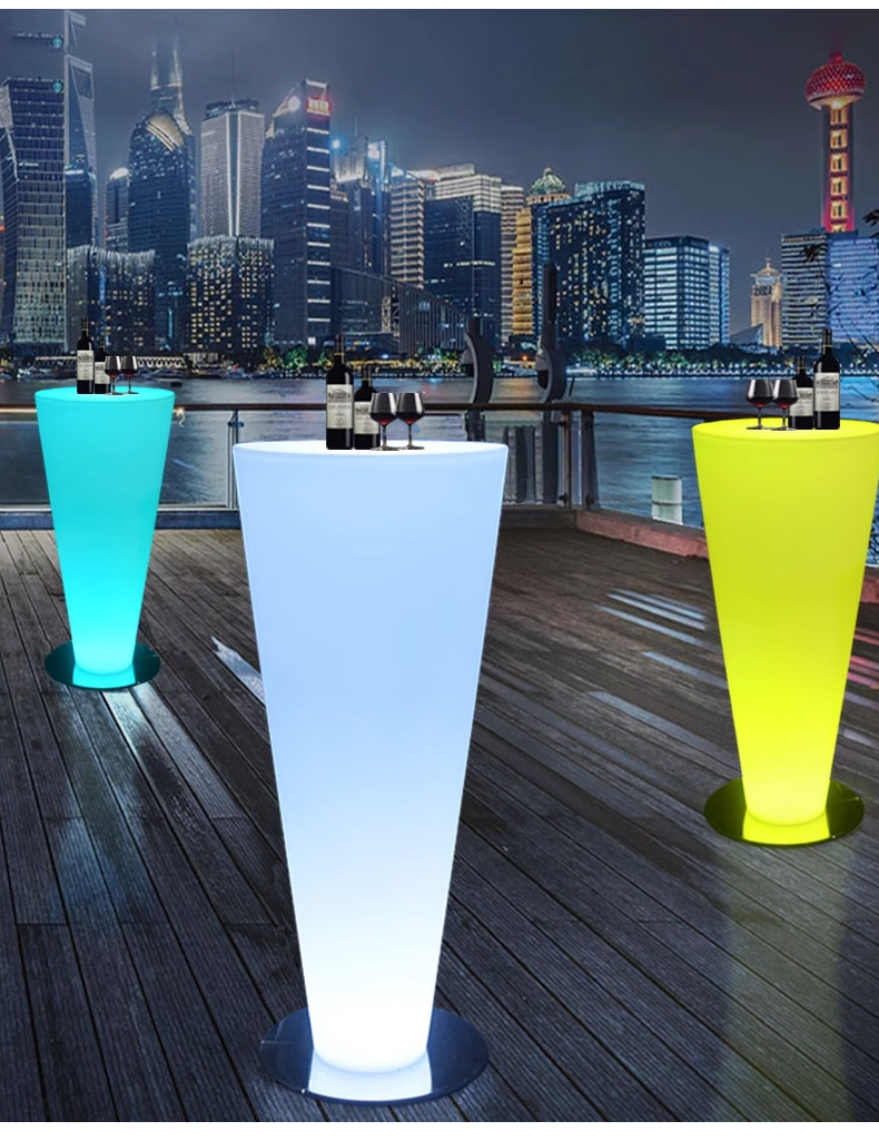 Светящийся коммерческий коктейльный стол для улицы, прозрачный бар, светящийся высокий стол и стулья, открытое мероприятие, выставочный круглый стол