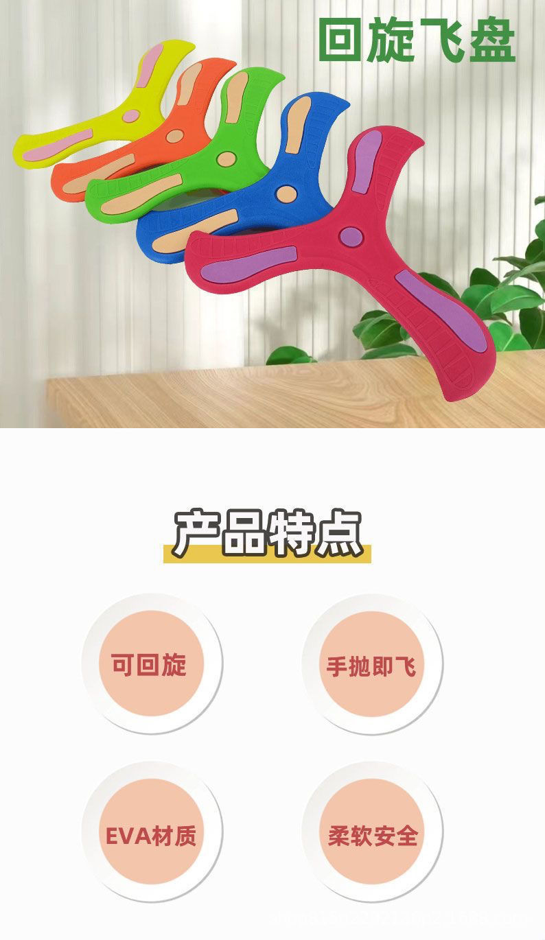 ![[Factory Outlet] Children's outdoor boomerang EVA soft material fly to hand throw three-leaf boomerang wholesale](/api/image?url=https%3A%2F%2Fcbu01.alicdn.com%2Fimg%2Fibank%2FO1CN014R53DV1Kw1122WunT_!!2219551541227-0-cib.jpg)