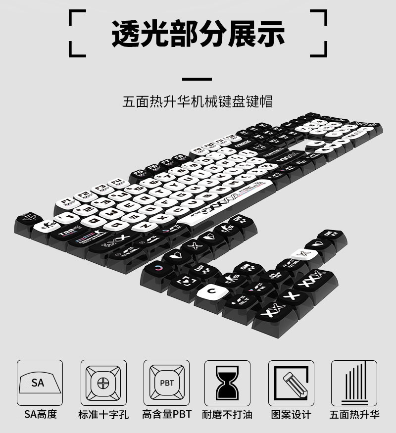 Набор клавиш для механической клавиатуры SA высоты с четырёхсторонним проходом, PBT, сублимационный процесс, шариковая клавиша, пудинг, полный набор из 125 клавиш