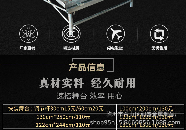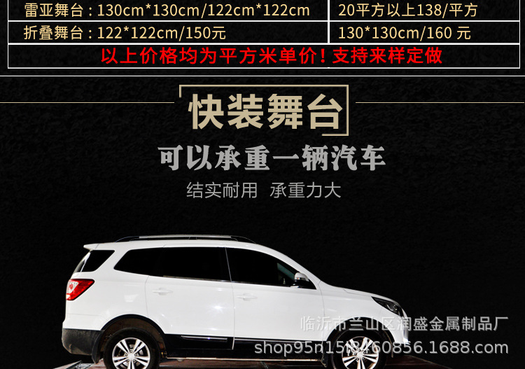 2.快装舞台大块面的122x244cm和128x250的110元每平方 小块的 130元每平方(122x122/128x128/100x200cm)量大批发价,咨询优惠价