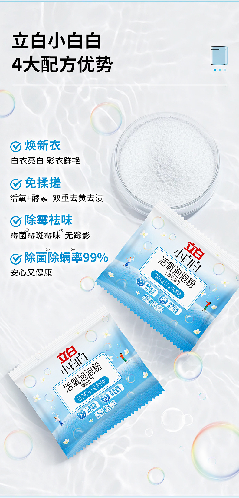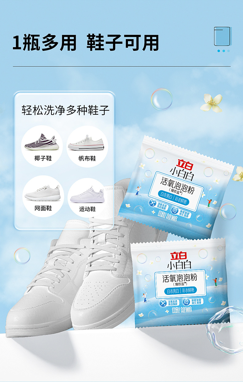 Маленькая белая соль для отбеливания, дезинфекция, удаление желтизны, отбеливающий порошок для белой одежды и обуви