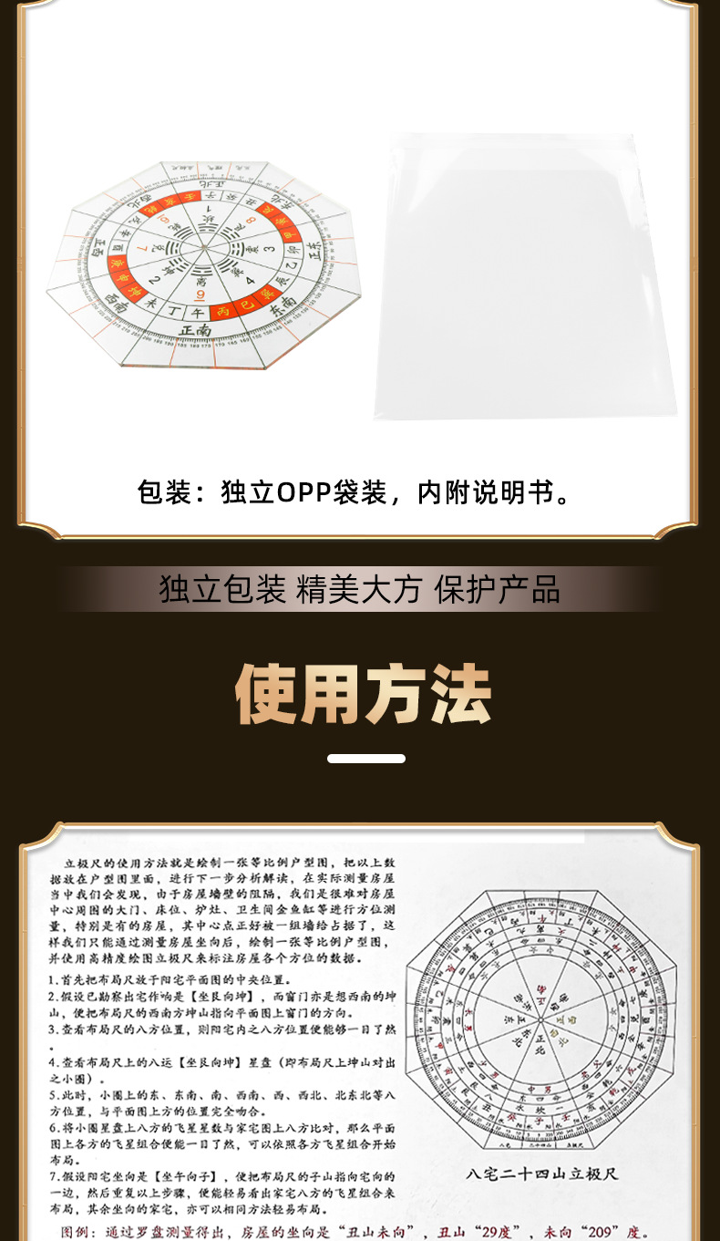 Оптовая продажа вертикального правила восьми домов Вэньчан, восьмиугольный акриловый компас высокой точности