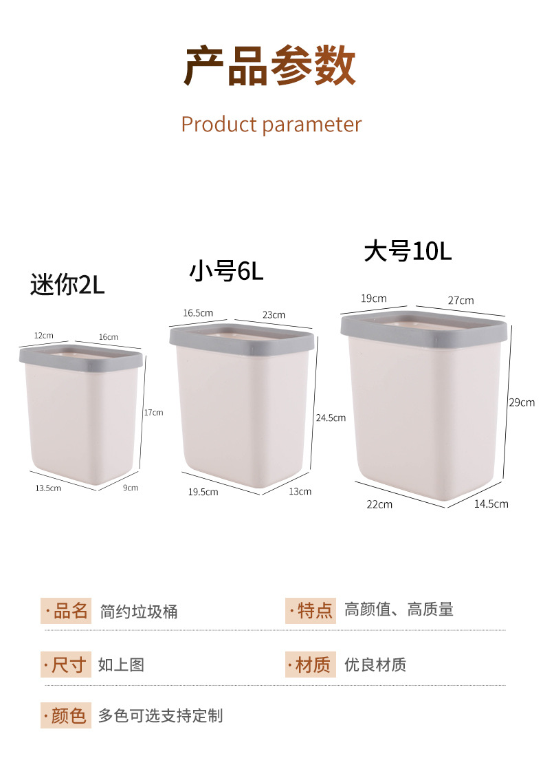Креативное простое мусорное ведро без крышки, с пресс-кольцом, большое для кухни, ванной, гостиной