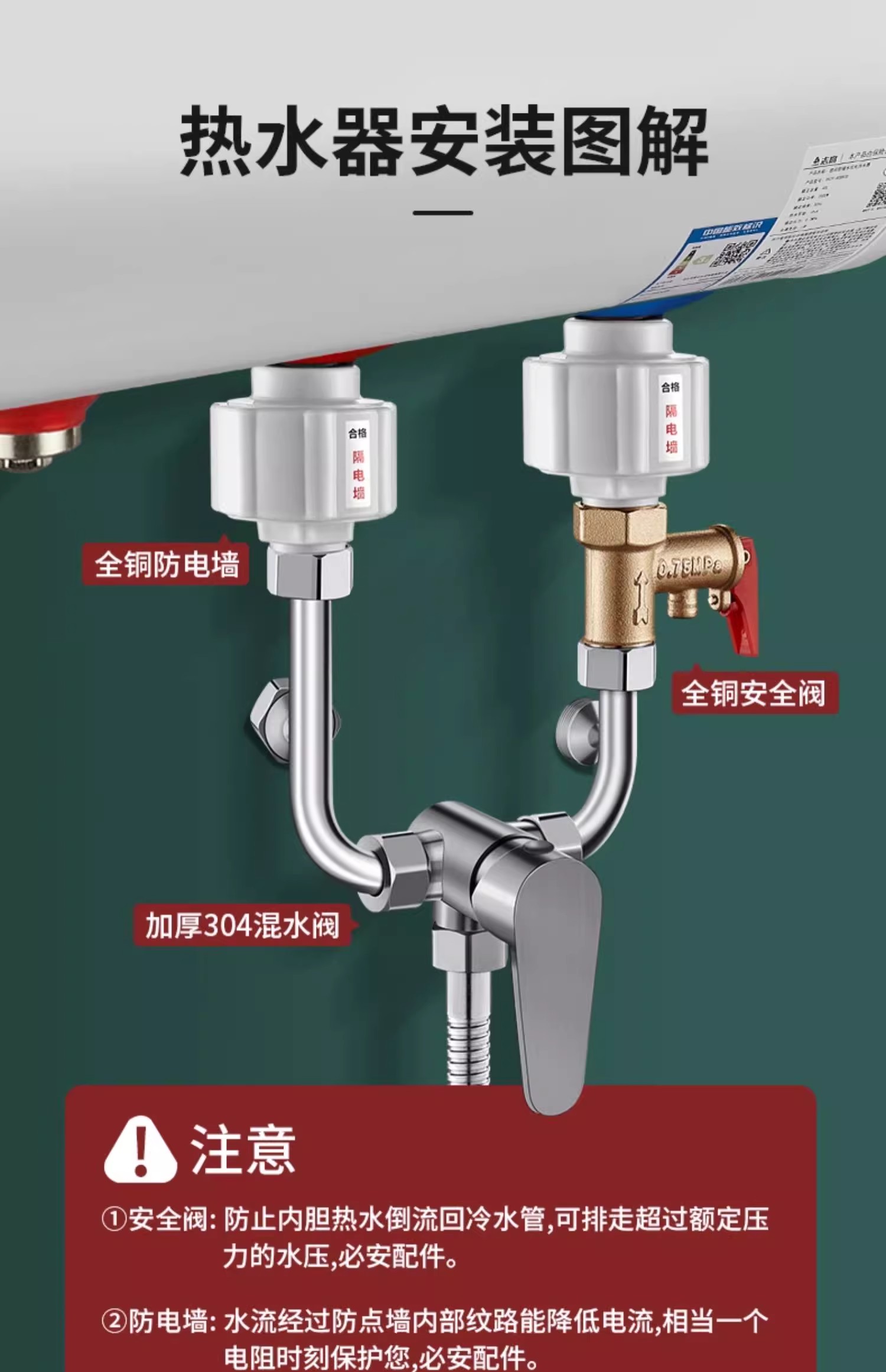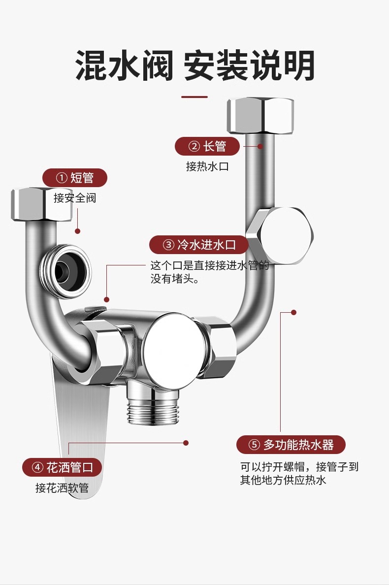 Смесительный клапан для электрического водонагревателя из нержавеющей стали 304, аксессуары для водонагревателя, переключатель горячей и холодной воды