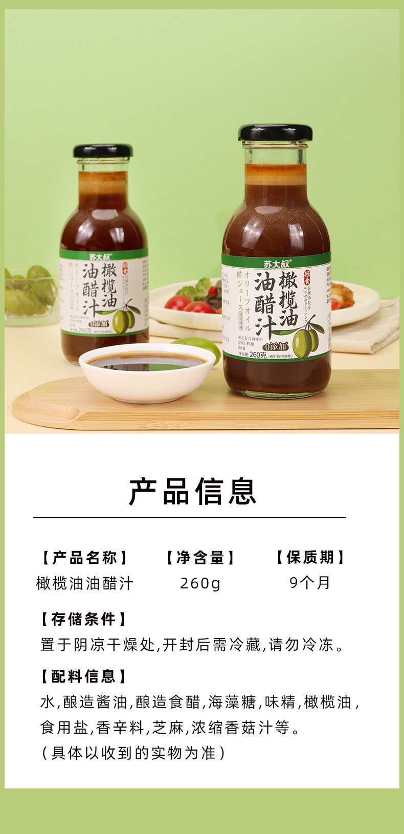 ![]() | Uncle su 260g olive oil vinaigrette | ¥4.9 / ≈ 59 ₽ | 764 | 5931455895536 | |
