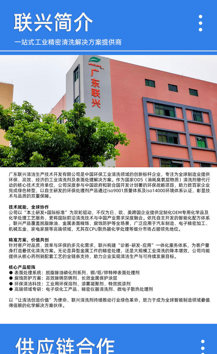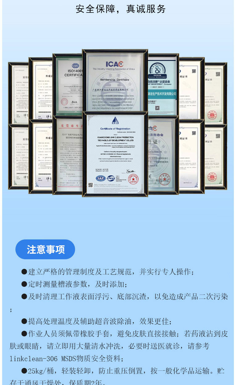 【适用范围】机械加工及电子电气行业中各种金属制件上的油脂、蜡膏等污垢的清洗脱脂。