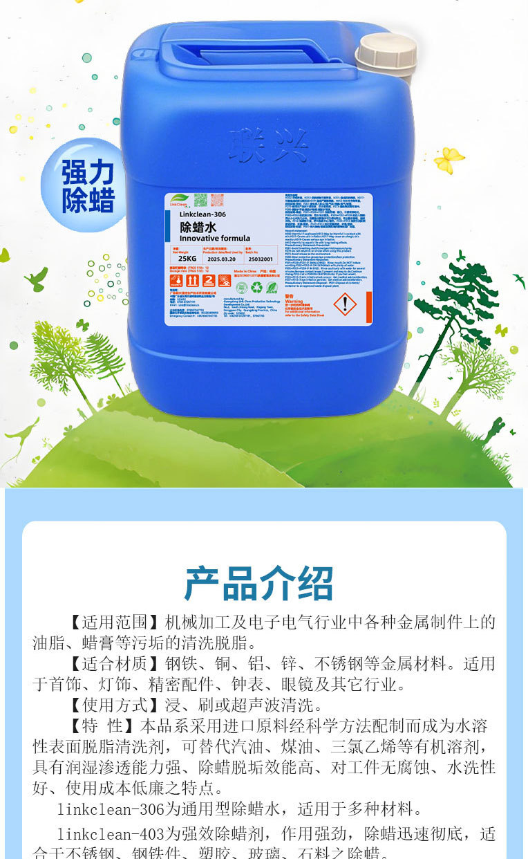S-403为强效除蜡剂,作用强劲,除蜡迅速彻底,适合于不锈钢、钢铁件、塑胶、玻璃、石料之除蜡。