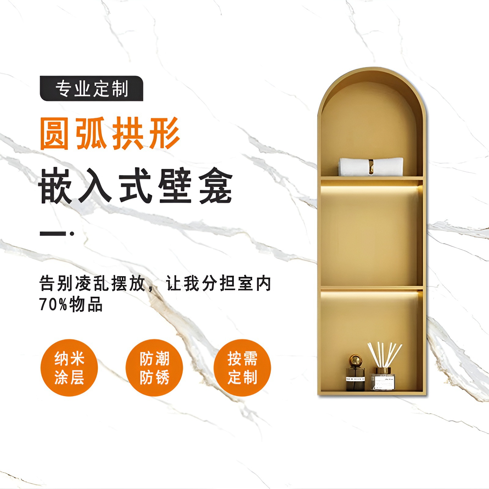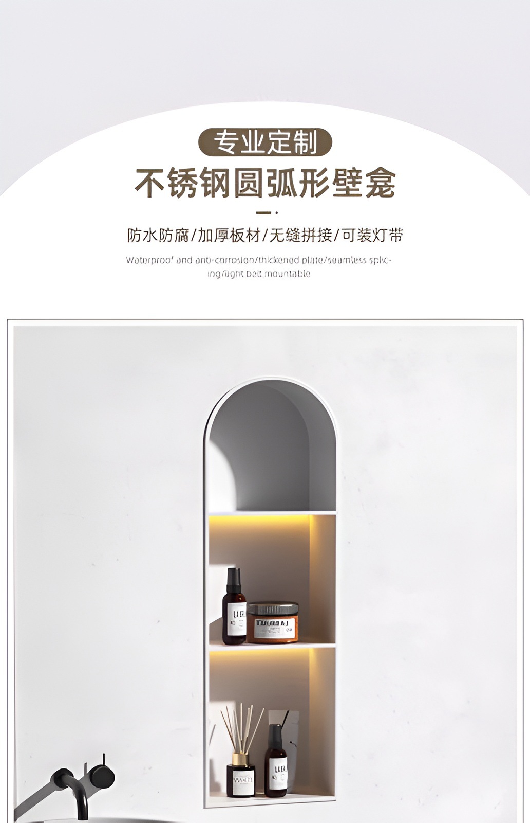 Изогнутая ниша для ванной из нержавеющей стали 304, металлический шкаф для хранения, арочная встроенная ниша