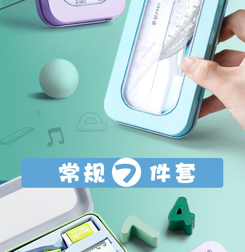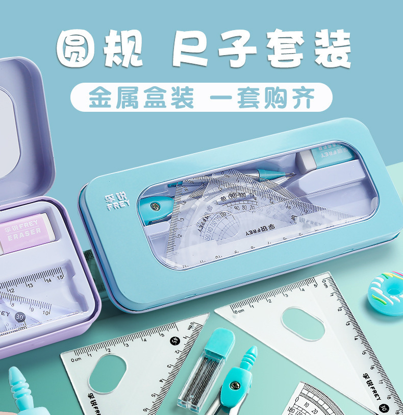 Металлический набор компасов для учеников средней и начальной школы, специальный набор линейок, двухвостая линейка, семидетальный набор