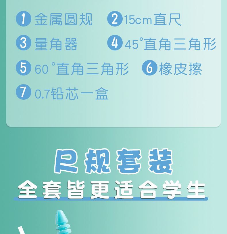 📦 | Green | 7-piece ruler set | 1шт: ¥3.50, 144шт: ¥3.40, 1440шт: ¥3.30 | 2158 | 5937519637438 | |