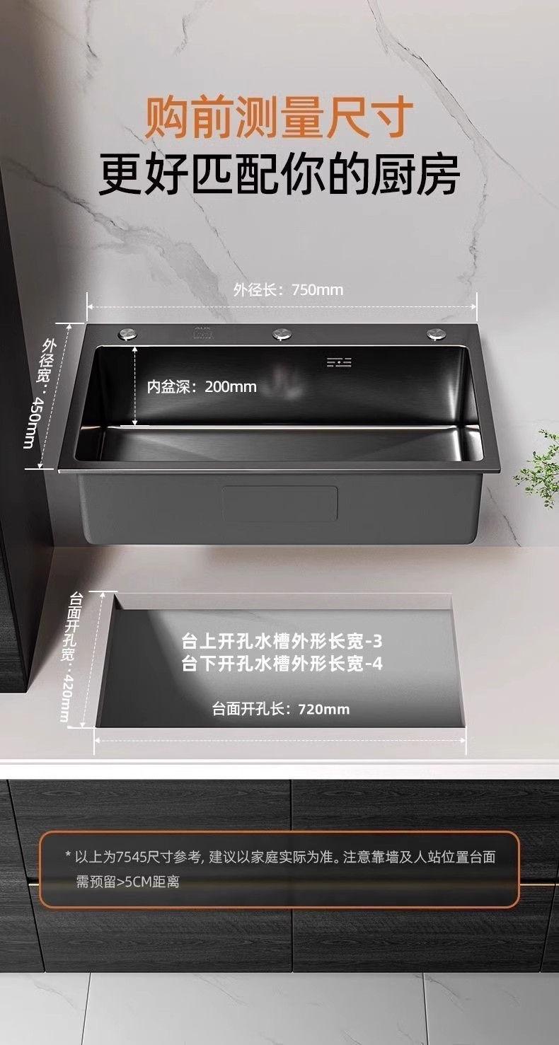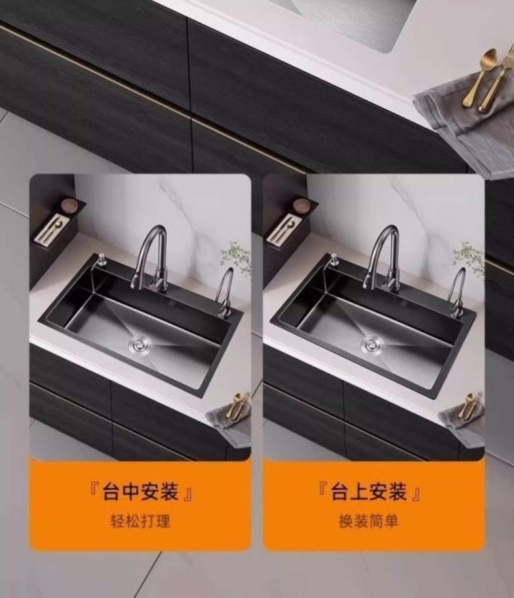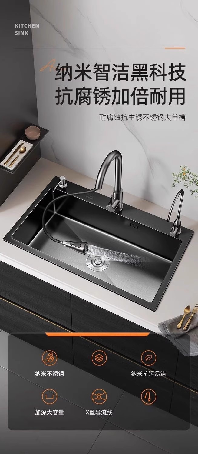 Черная раковина Кинг Конг из нержавеющей стали, ручная раковина с одним отсеком, большая раковина для дома