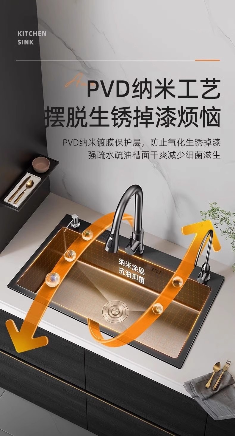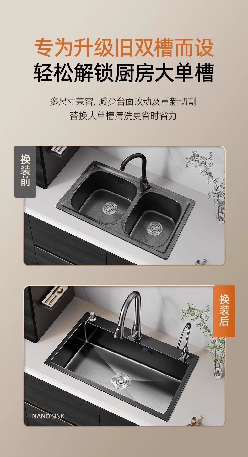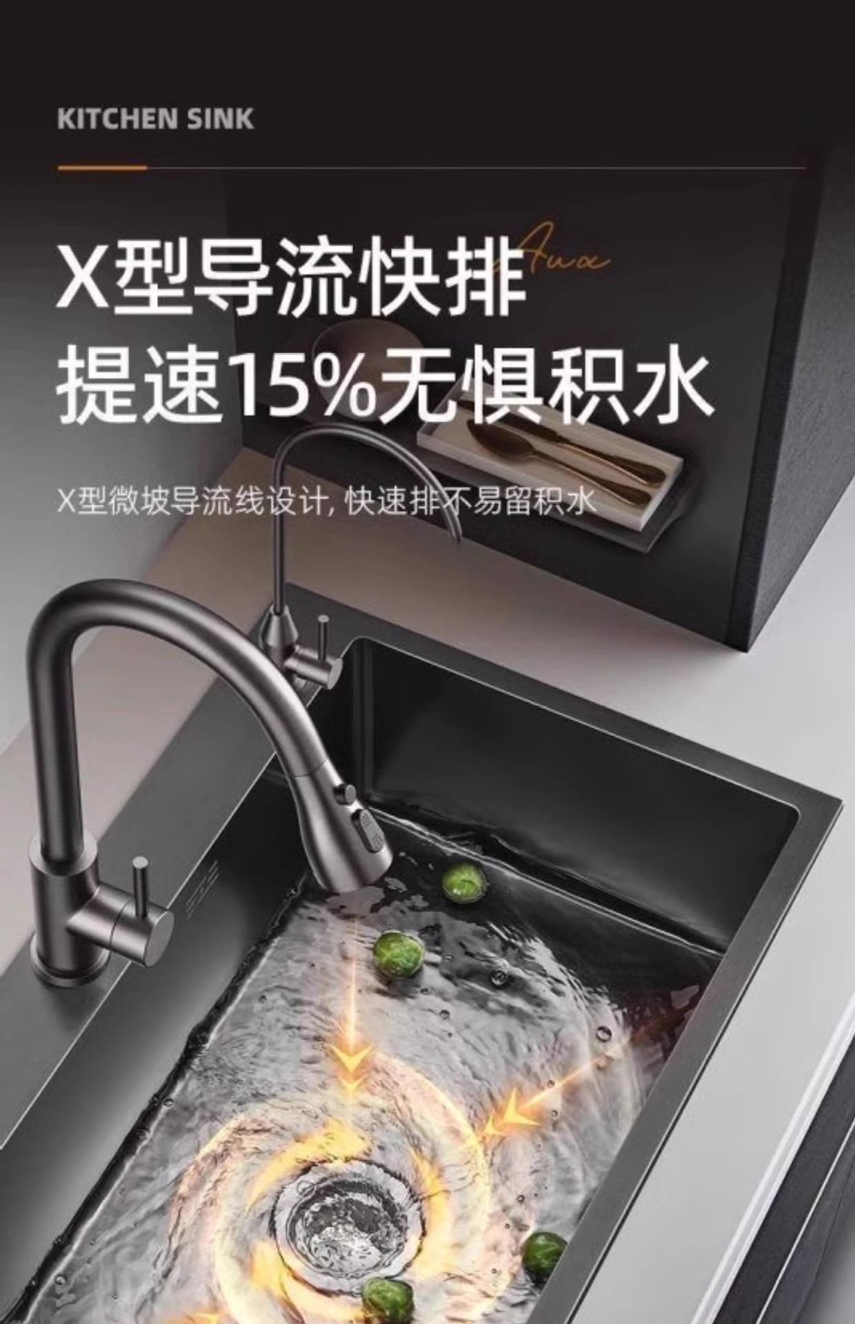 Черная раковина Кинг Конг из нержавеющей стали, ручная раковина с одним отсеком, большая раковина для дома