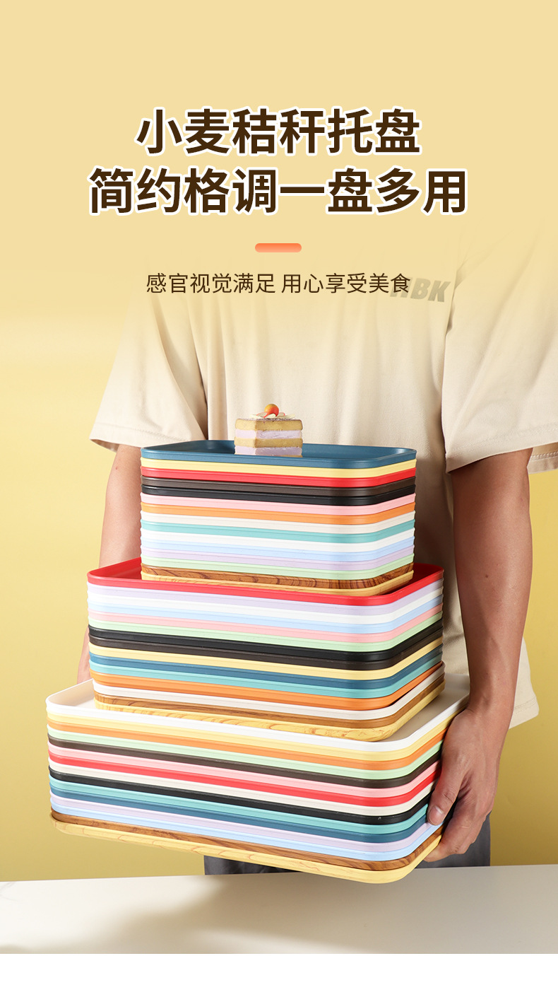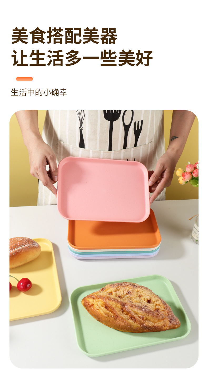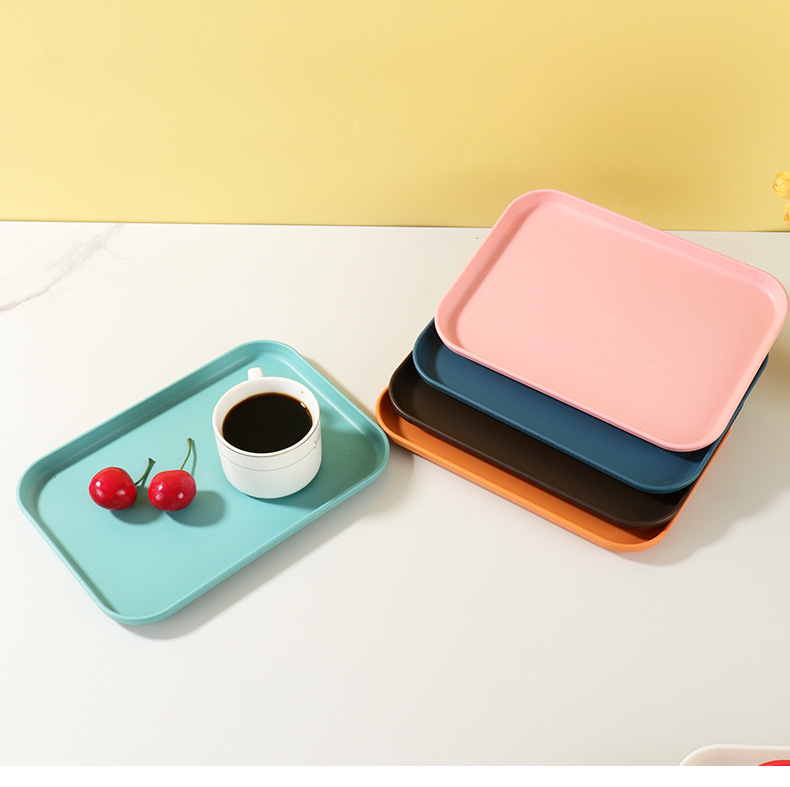 Прямоугольный поднос из пшеницы, коммерческий поднос для пельменей, чайный поднос, фруктовая тарелка, пластиковая соломинка в стиле скандинавии