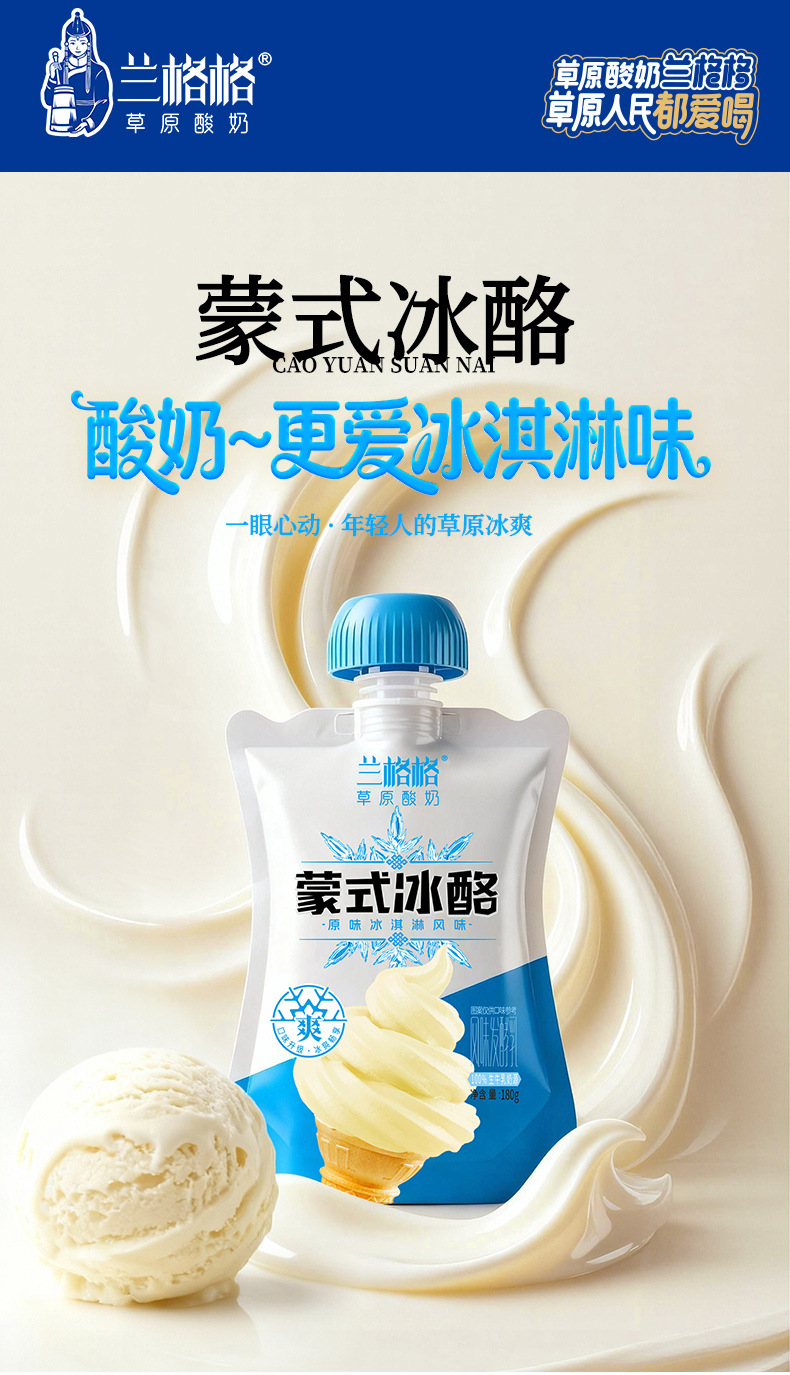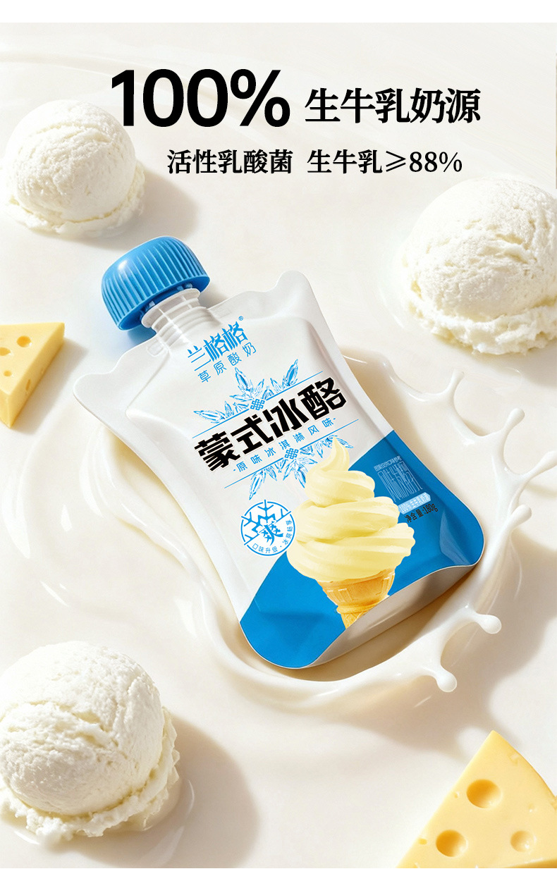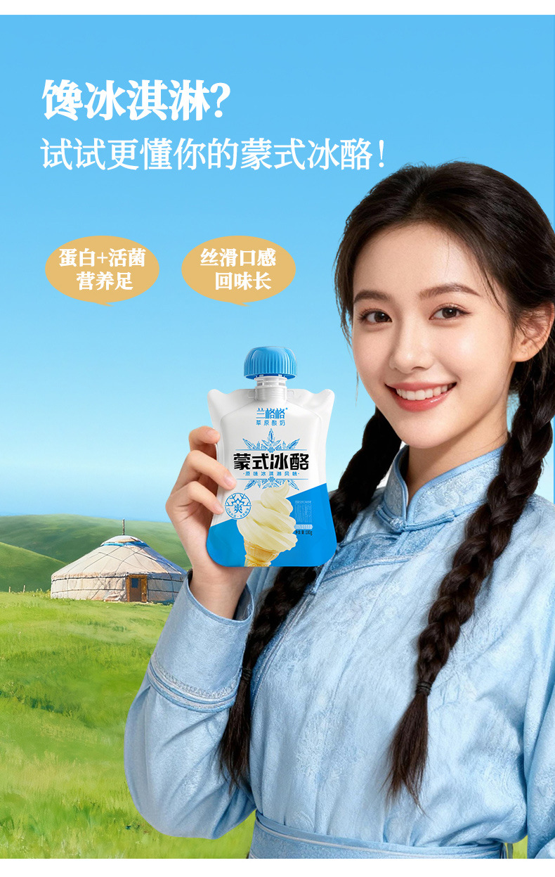 Langge Айс Крим с живыми бактериями ферментированный в монгольском стиле 180г*12 пакетов низкотемпературный йогурт оптовая упаковка