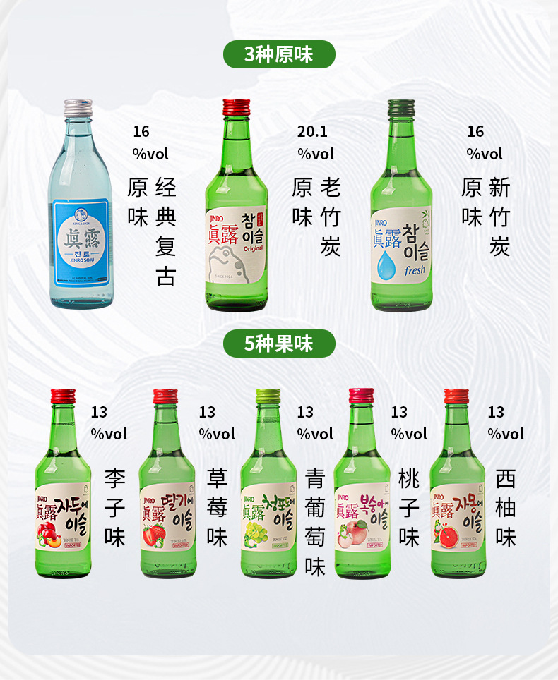 Оригинальный импортный южнокорейский соджу Jinro со вкусом зеленого винограда и грейпфрута 13 градусов 360 мл*20 бутылок в полной коробке