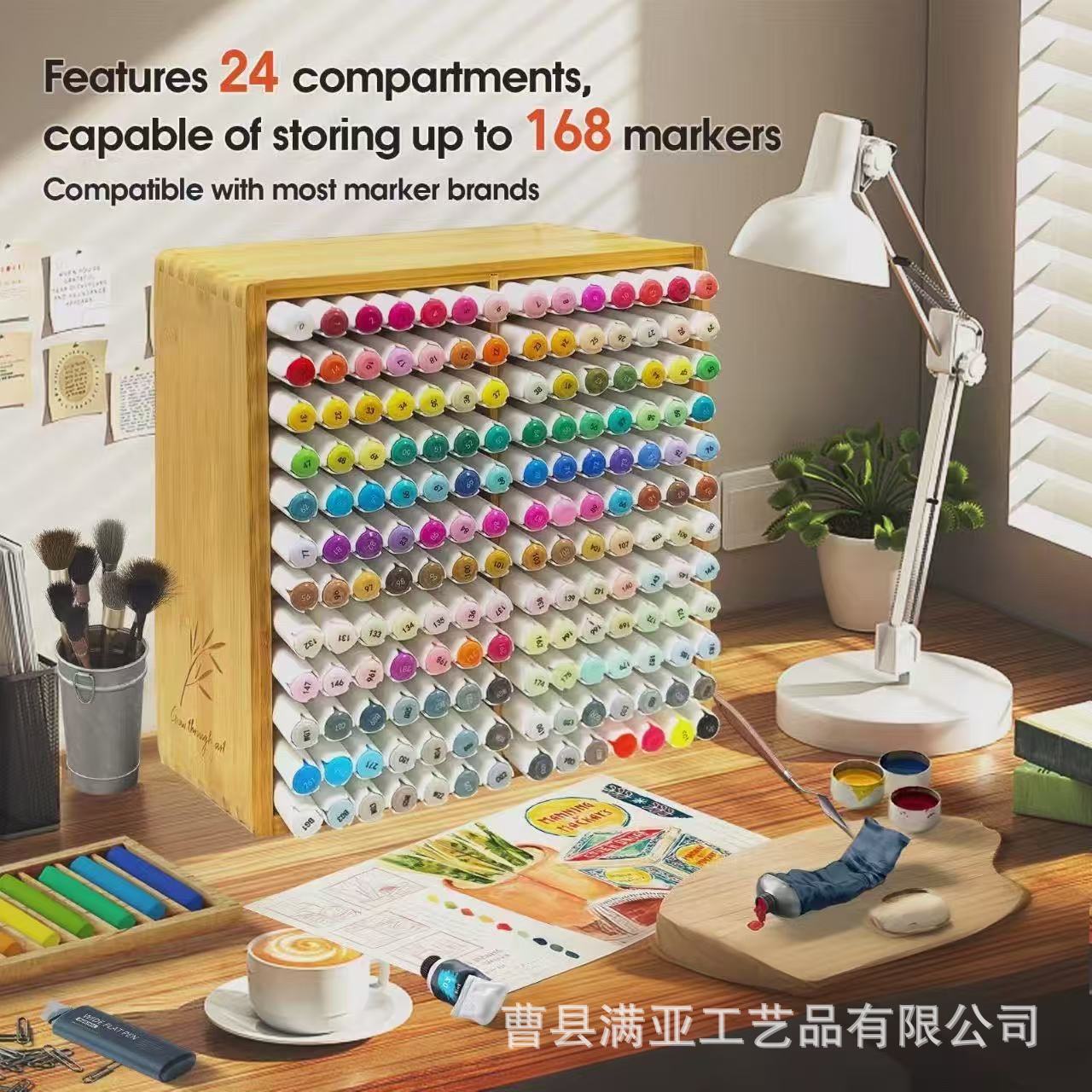 Коробка для хранения акварельных ручек из бамбука для рабочего стола, подставка для ручек, стойка для хранения детских масляных красок и кистей, многоуровневая деревянная рамка