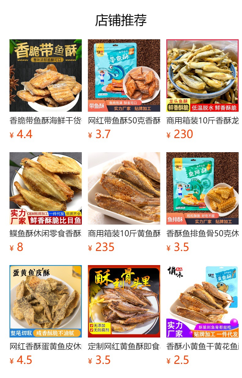 📦 | Spicy yellow croaker cake 30g/pack | ¥2.5 / ≈ 30 ₽ | 99999 | 5985612547534 | |
