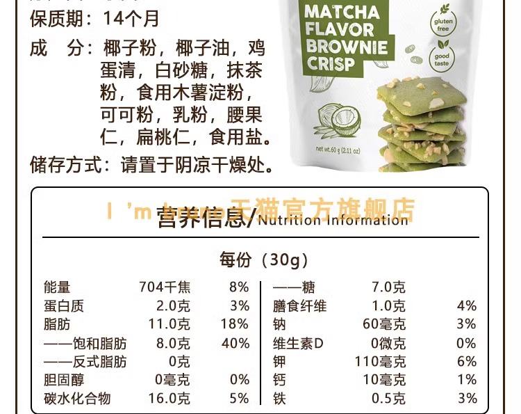 ![]() | Matcha flavored crispy brownie 60g | 2шт: ¥10.90, 24шт: ¥9.90 | 932 | 5930824530849 | |