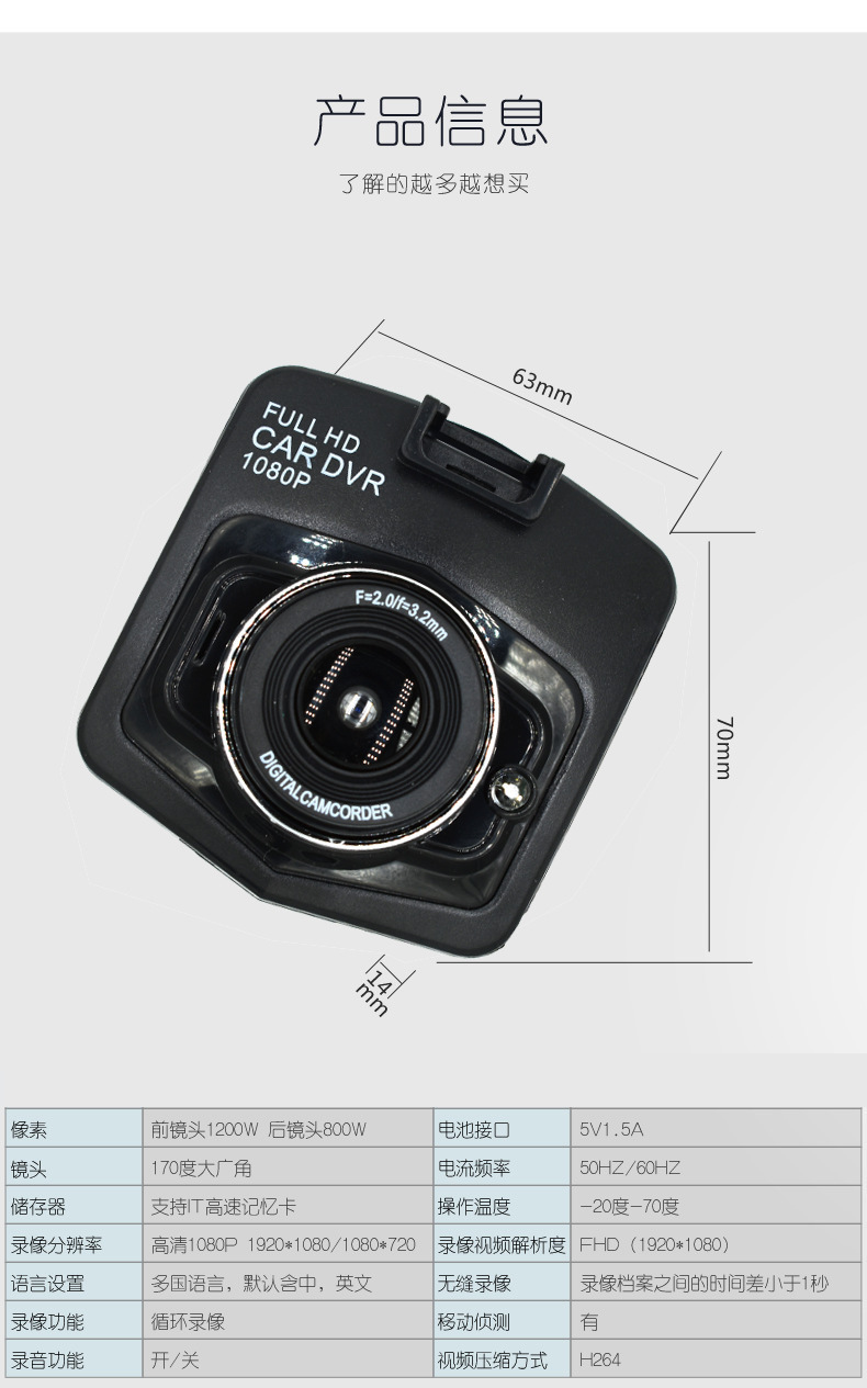 Модель с циклической записью 2.2 дюйма, стандарт 720P, 2.4 дюйма, HD 1080P, универсальный и экономичный