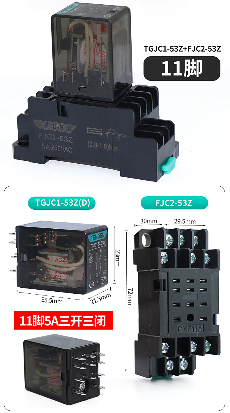 ![]() | 11-pin 53z with light + base, three open and three closed 5a-ac ac220v | ¥18.38 / ≈ 221 ₽ | 400 | 5765312224128 | |