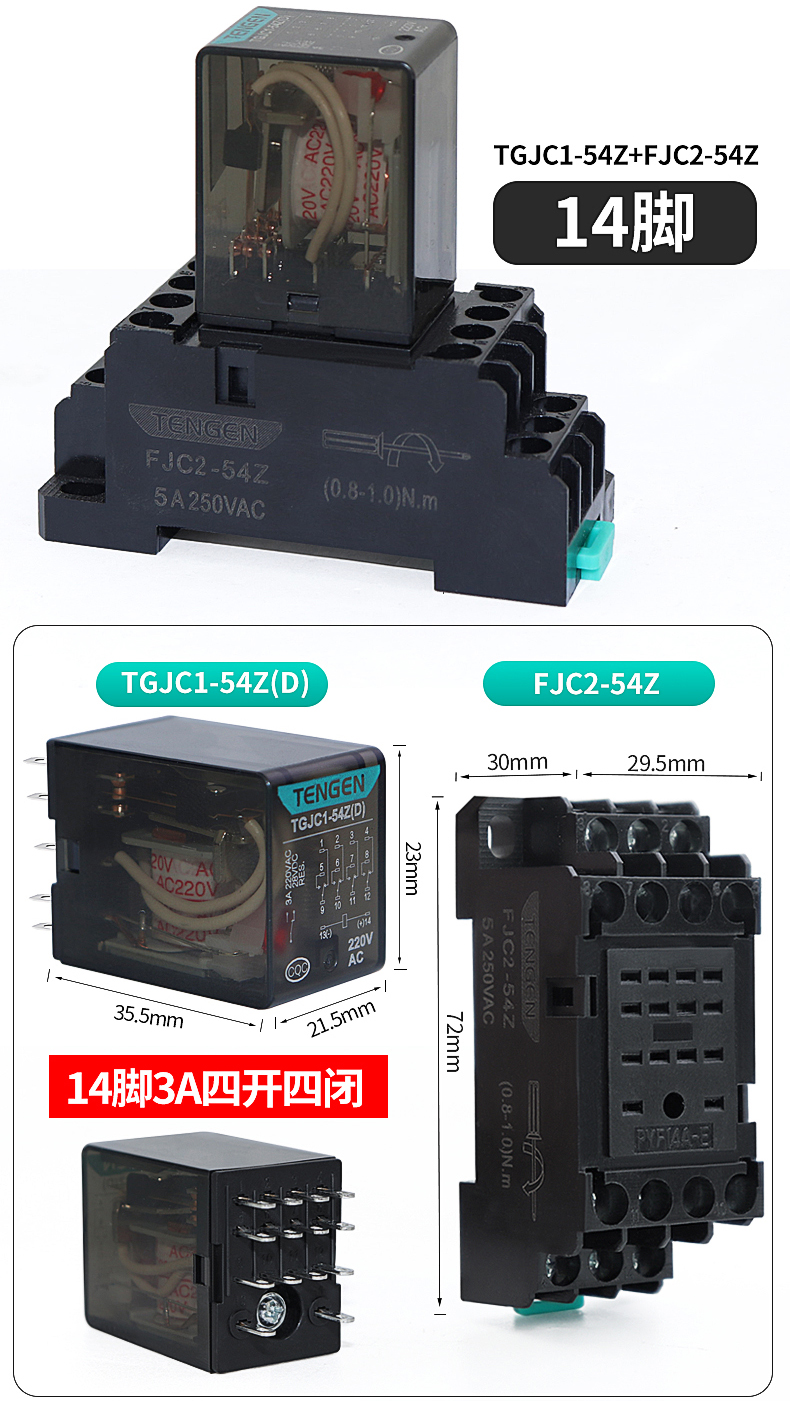![]() | 14-pin 54z with light + base, four open and four closed 3a-ac110v | ¥18.95 / ≈ 228 ₽ | 400 | 5765312224133 | |