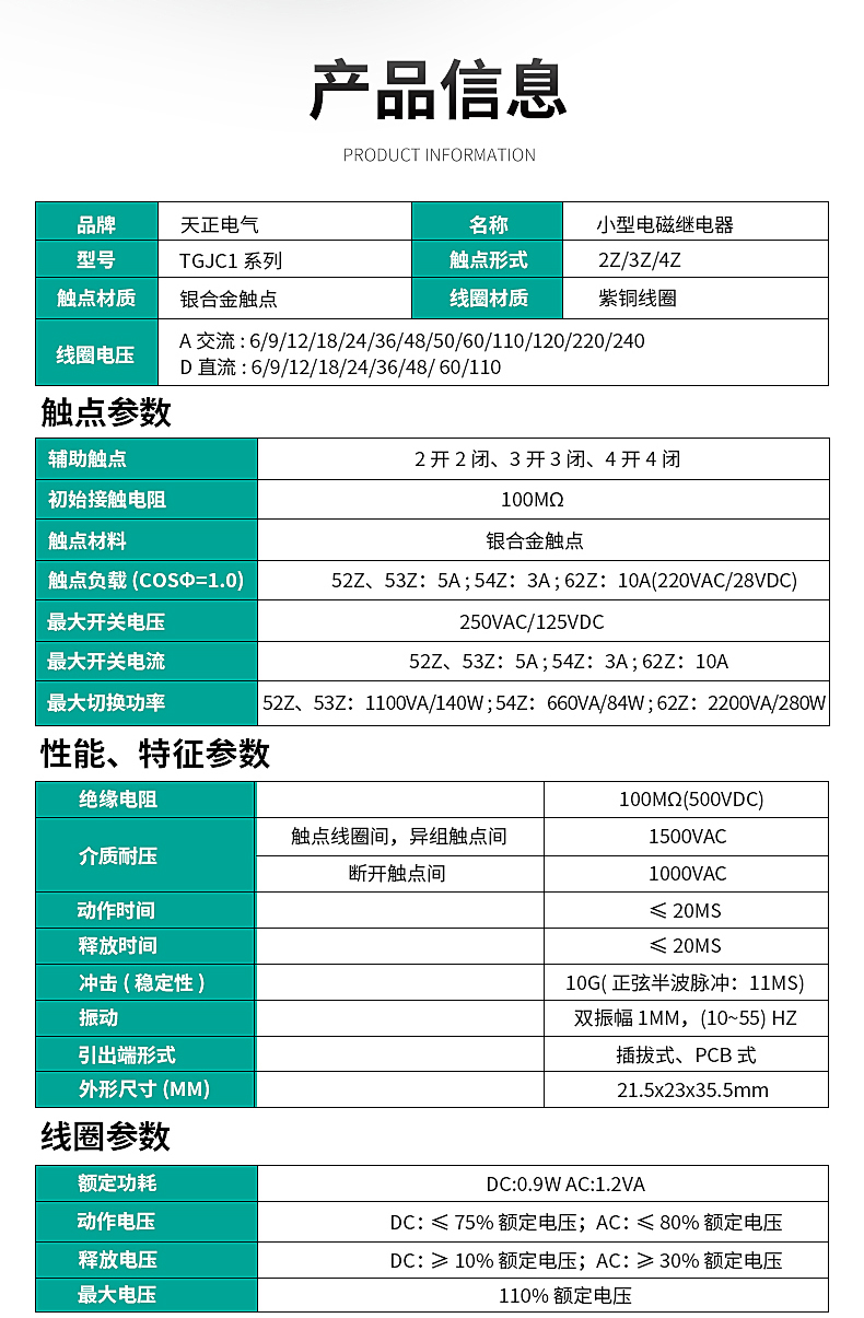 Тяньчжэн Tgjc1 малый промежуточный электромагнитный реле переключатель AC 220 DC 24V восемь 8-контактный 14-контактный контактор