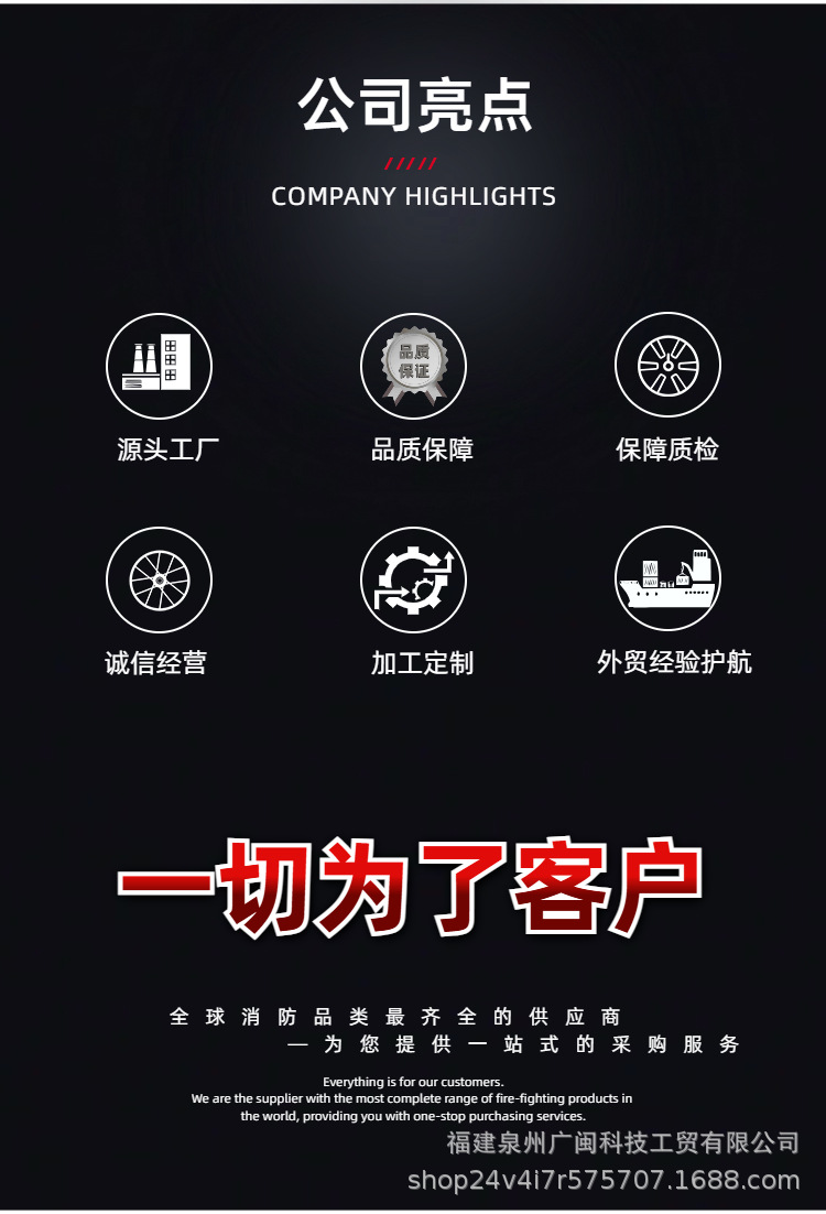 我们具备承接各类外贸订单的能力与资质,能够依据不同国家和地区的标准与要求,为全球客户提供定制化的消防设备解决方案。同时,我们全力支持定制服务,无论是特殊规格的产品尺寸、独特的性能参数设定,还是个性化的外观设计要求,我们都能通过专业的研发团队和先进的生产工艺予以实现,充分满足客户的差异化需求,在国际消防市场上赢得了广泛的赞誉与良好的口碑。