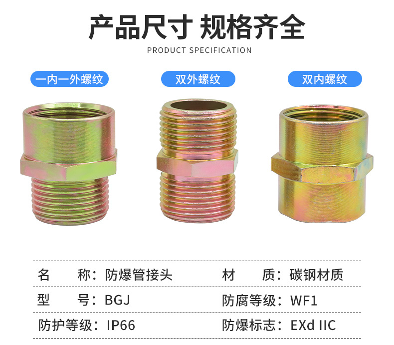 Углеродная сталь взрывозащищенный трубопроводный соединитель Bgj3/4 внутренние и внешние резьбы мостовой трубопроводный соединитель взрывозащищенный трубопроводный хомут нестандартная резьба