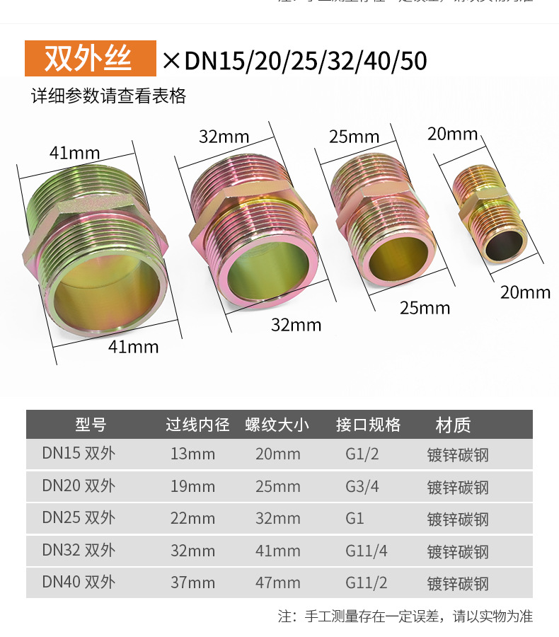 ![]() | Dn50(2inch) double outer wire | ¥7.9 / ≈ 95 ₽ | 10000 | 5766063348018 | |