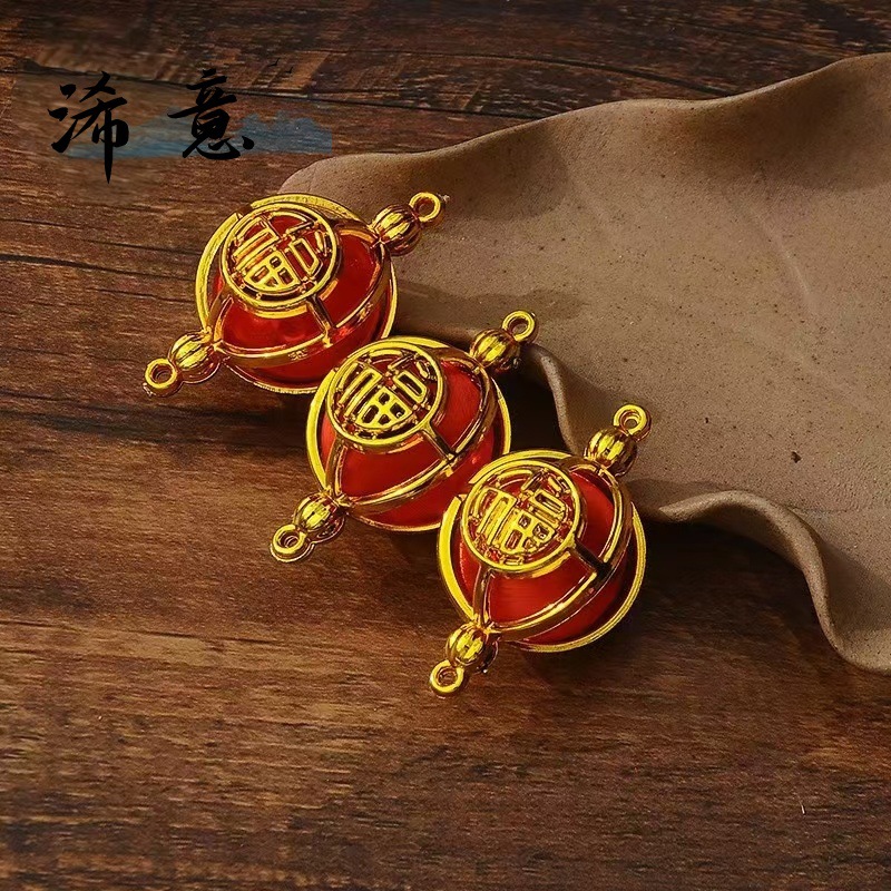 Подвеска с золотым благословляющим символом, материалы для ручной работы, аксессуары для ювелирных изделий, шелковый шар, маленький фонарик, новогодний праздничный шар