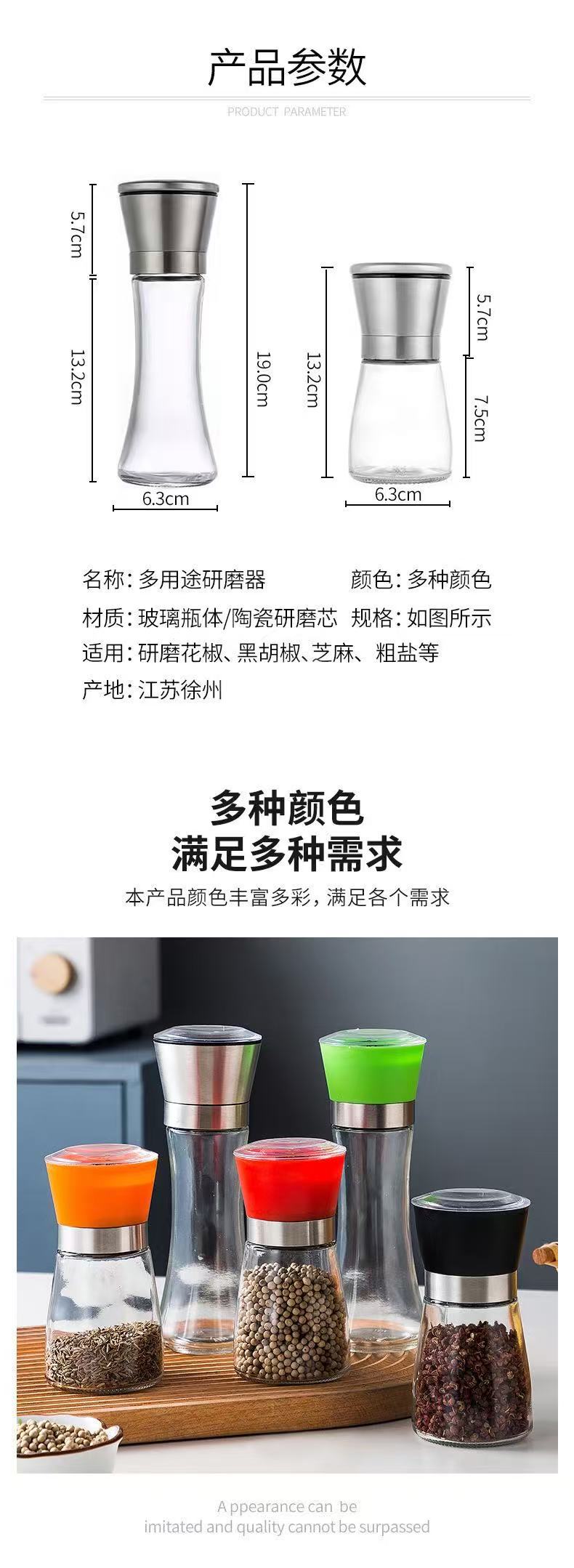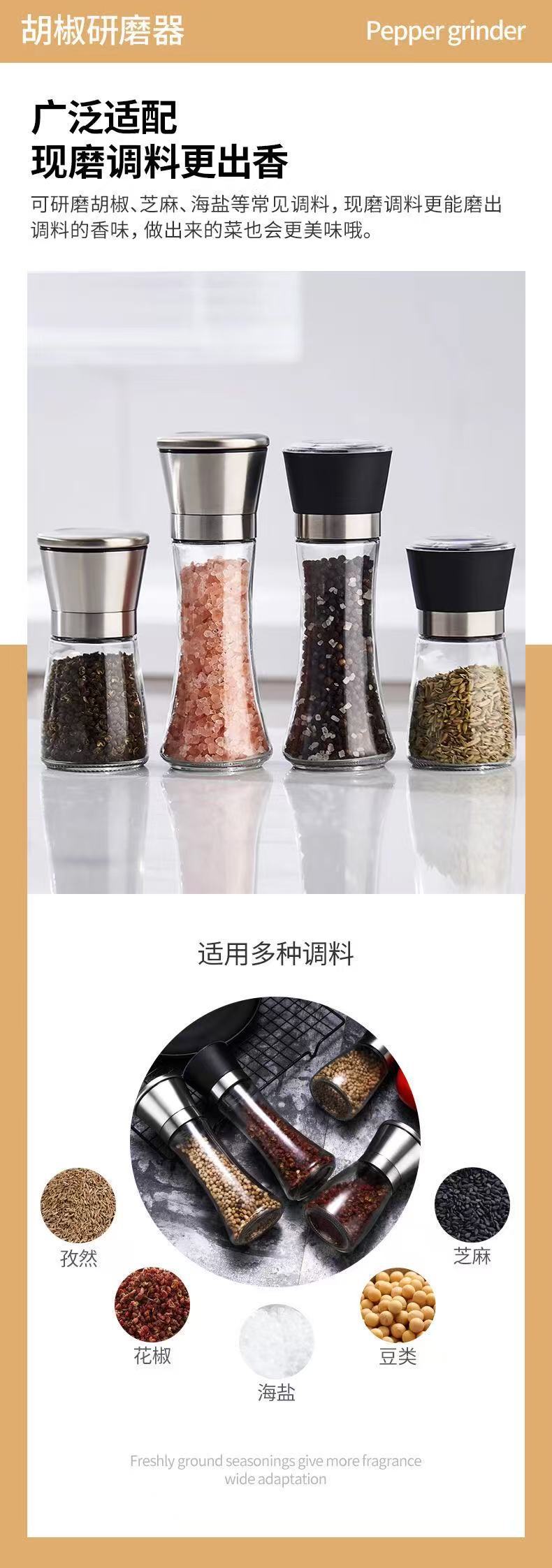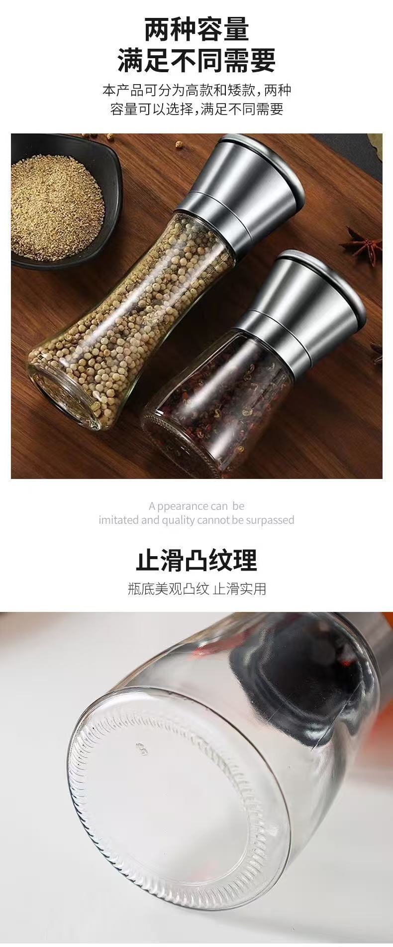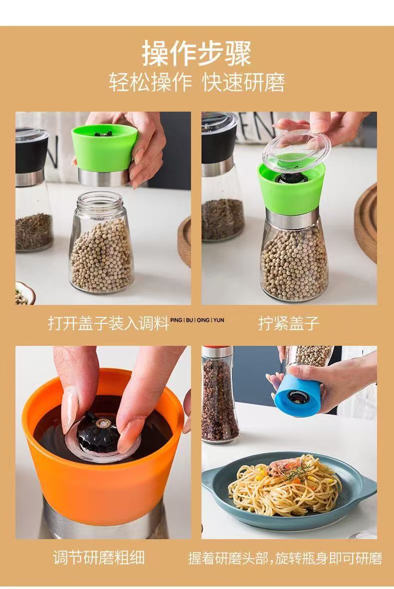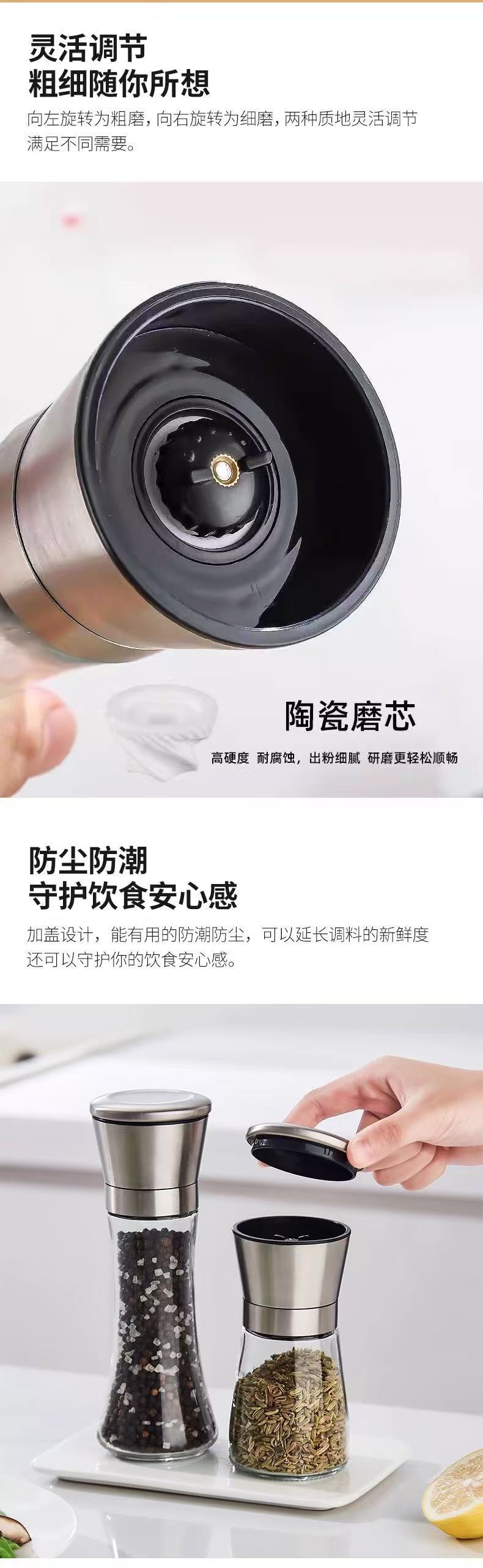 Ручная стеклянная мельница для перца и морской соли из нержавеющей стали