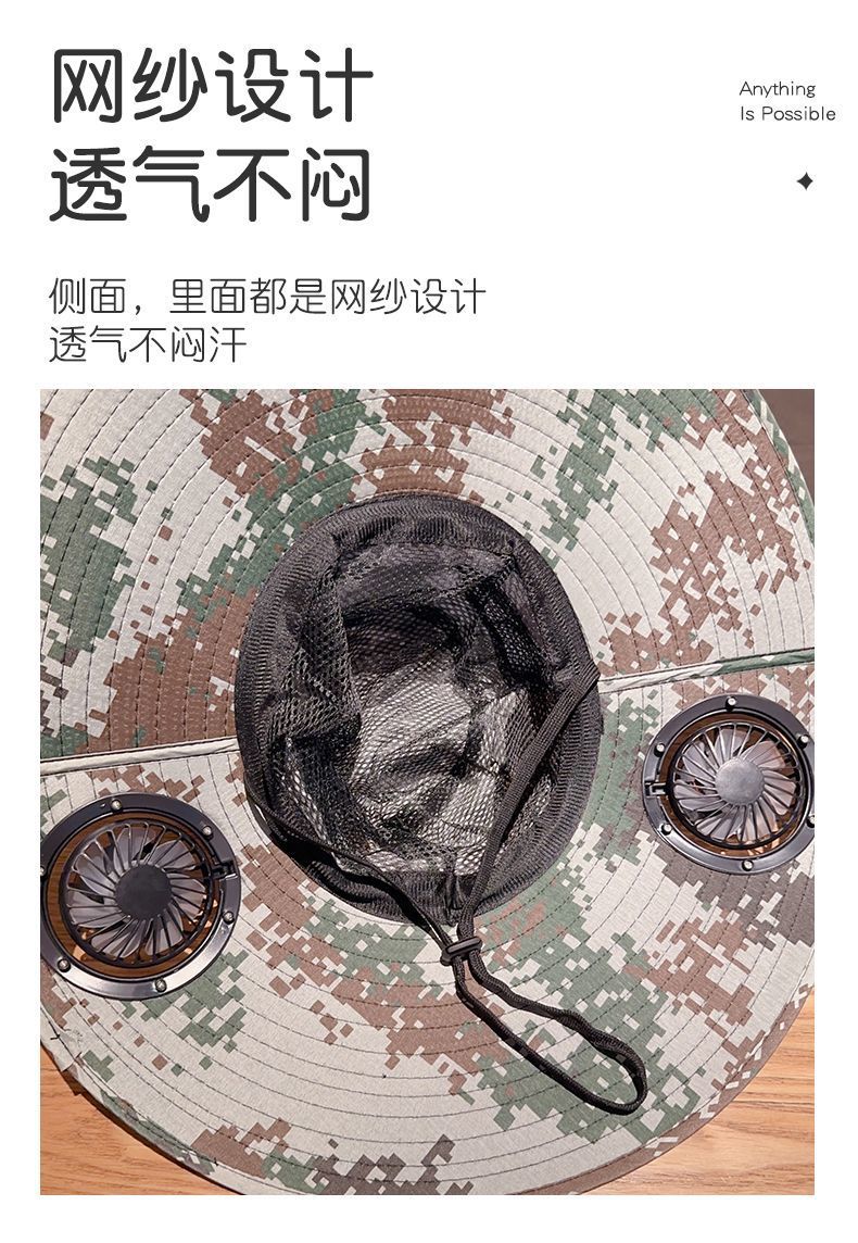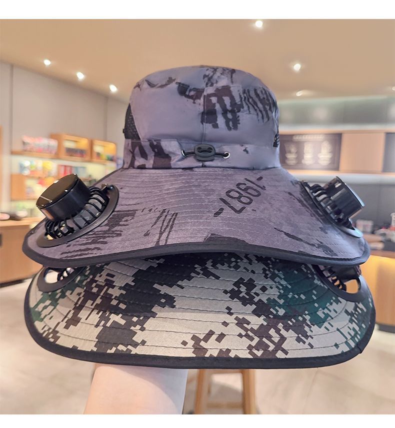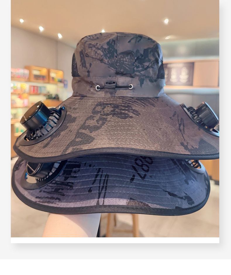Шляпа с широкими полями большого размера с перезаряжаемым вентилятором для мужчин, для кемпинга и походов на солнце