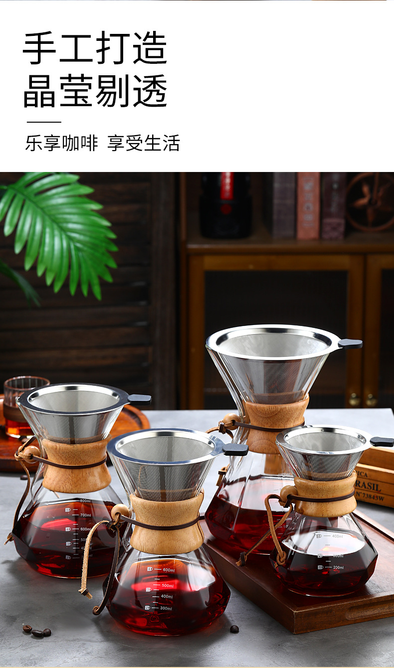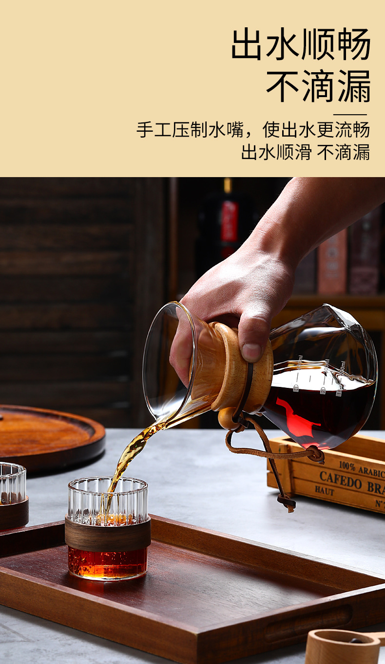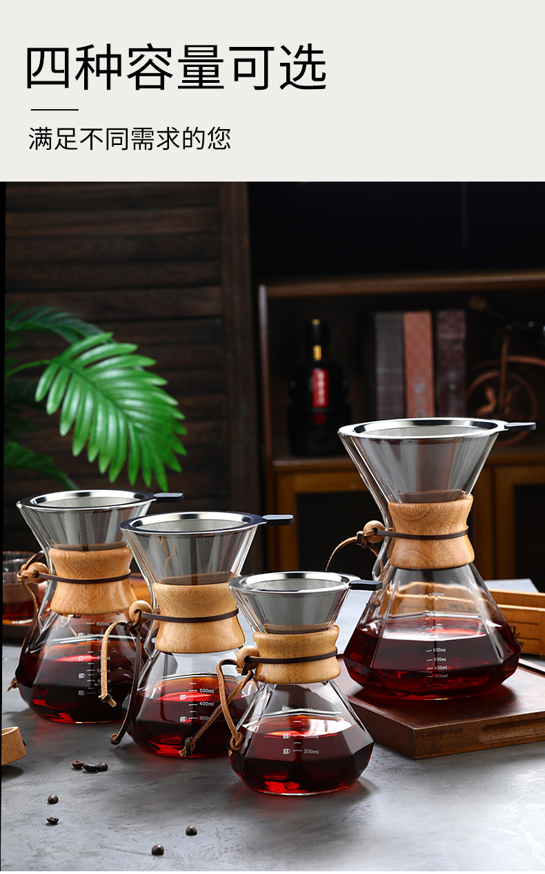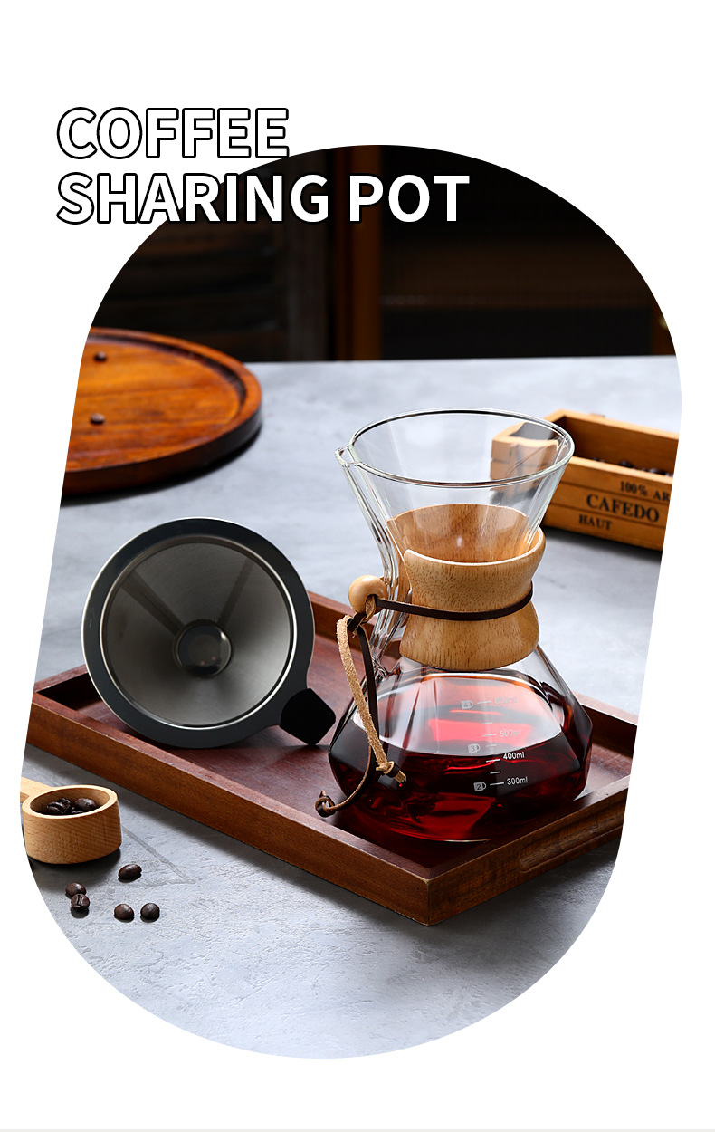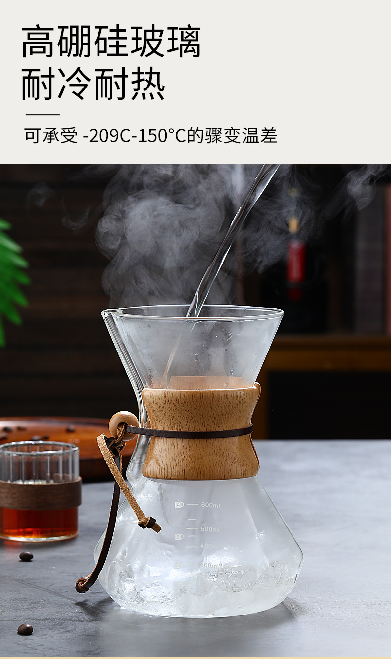 Кофейник из закаленного стекла с деревянной ручкой, комплект для ручного заваривания, антипригарный, для домашнего использования