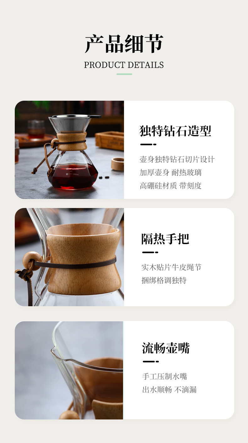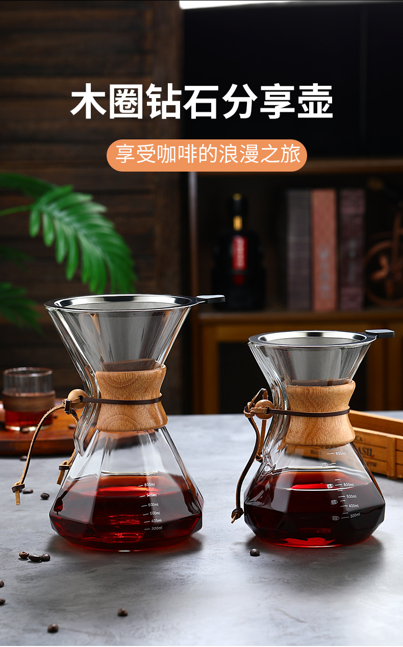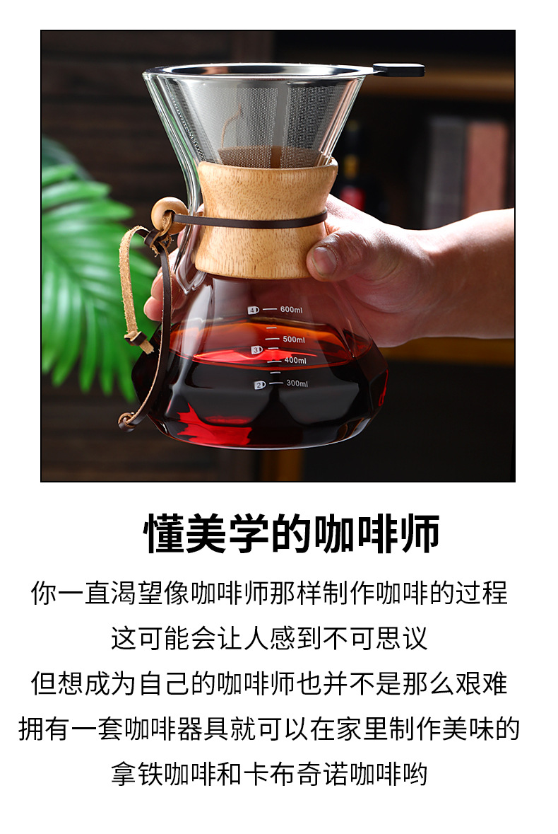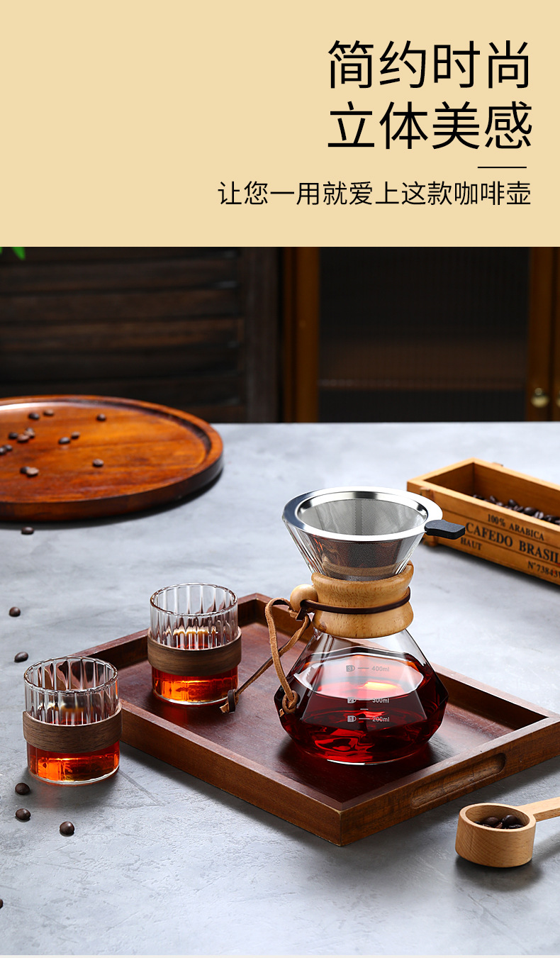 Кофейник из закаленного стекла с деревянной ручкой, комплект для ручного заваривания, антипригарный, для домашнего использования
