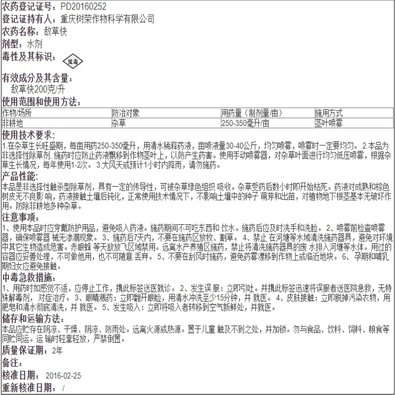 Гербицид Shurong Shi Jing 200Г/Л для борьбы с сорняками на неосвоенных землях