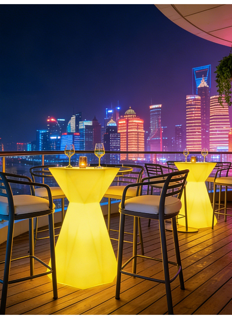 Барный стол Люминеус с высокими стульями для открытых мероприятий, ресторанов и коктейльных вечеринок