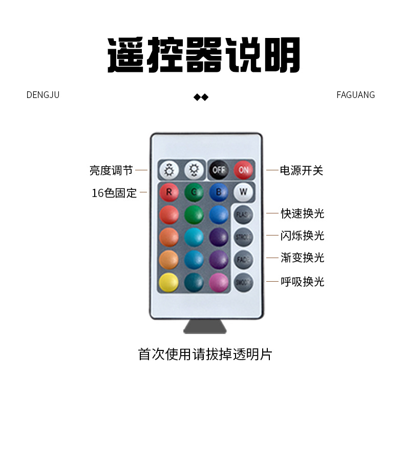 ![]() | Light source base/rechargeable version | 16 color light remote control | ¥68.0 / ≈ 820 ₽ | 9834 | 6017530400146 |