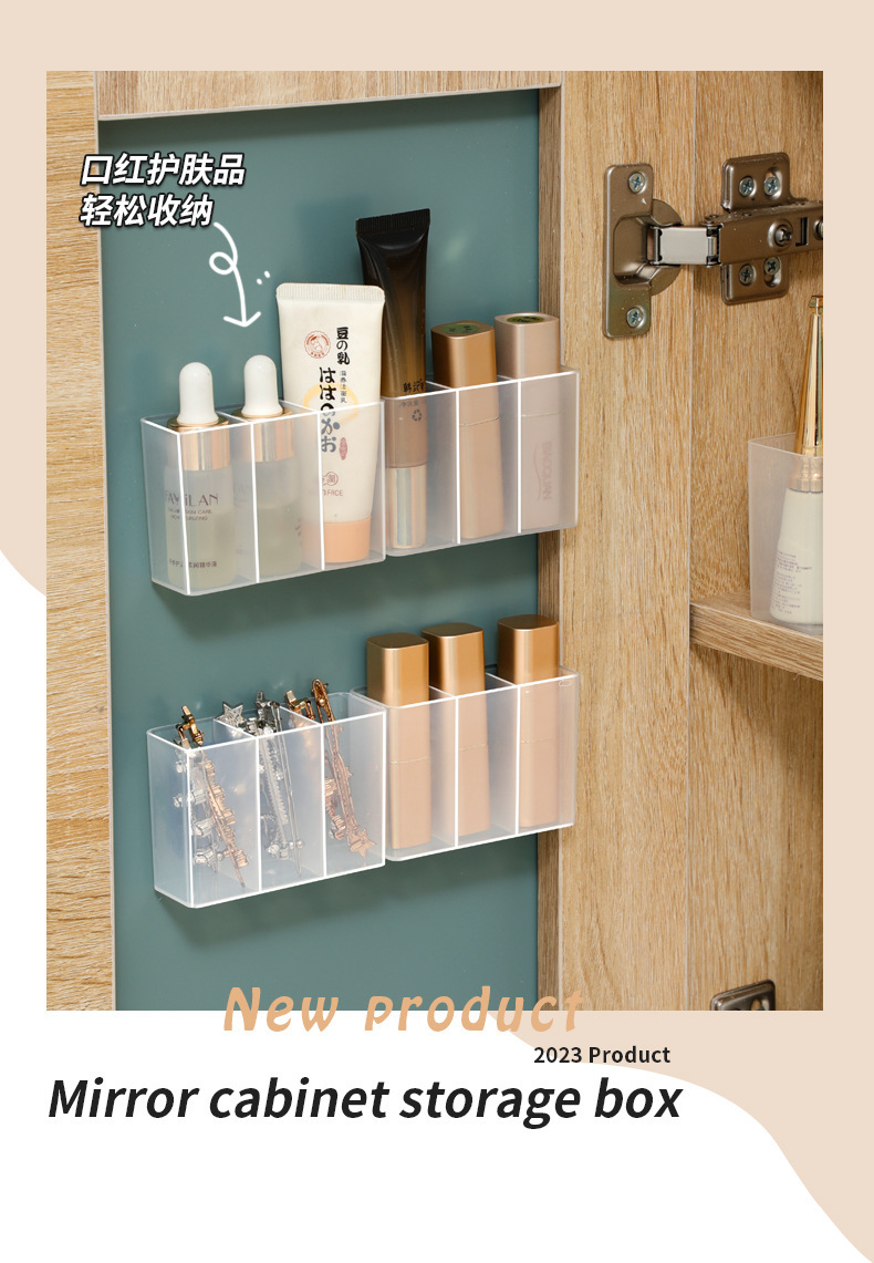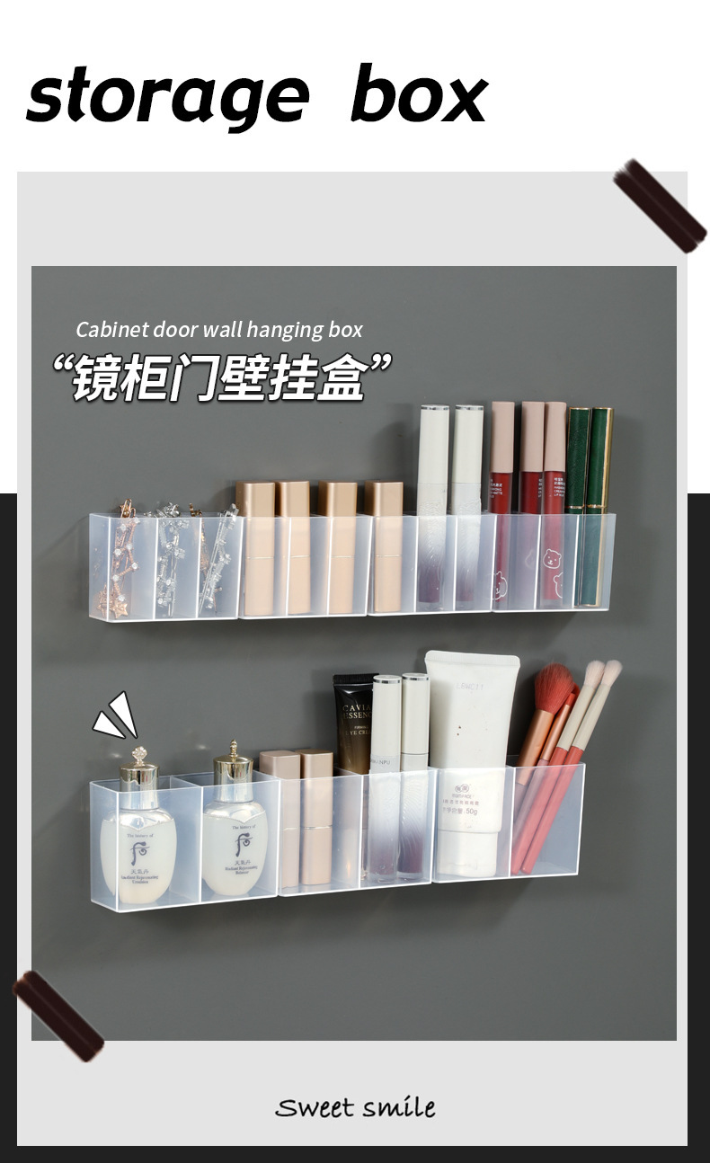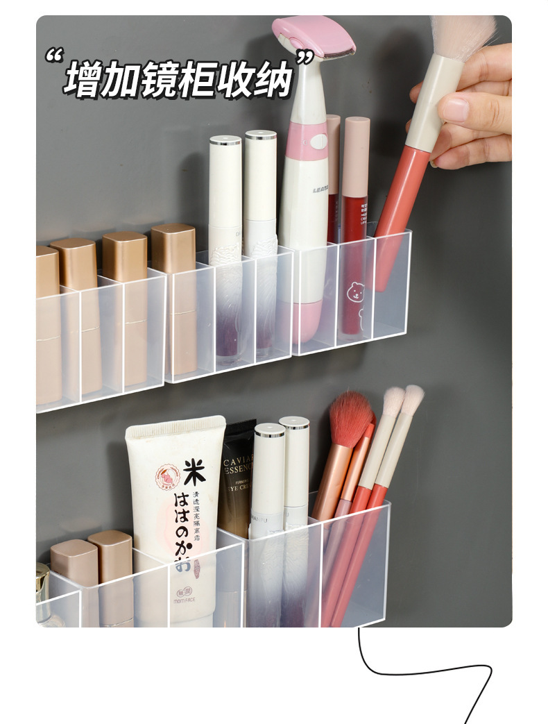 Настенный зеркальный шкаф с отделениями, без сверления, коробка для хранения мелочей, для пинцетов, ножниц, карандаша для бровей, кистей, помады, органайзер для макияжа
