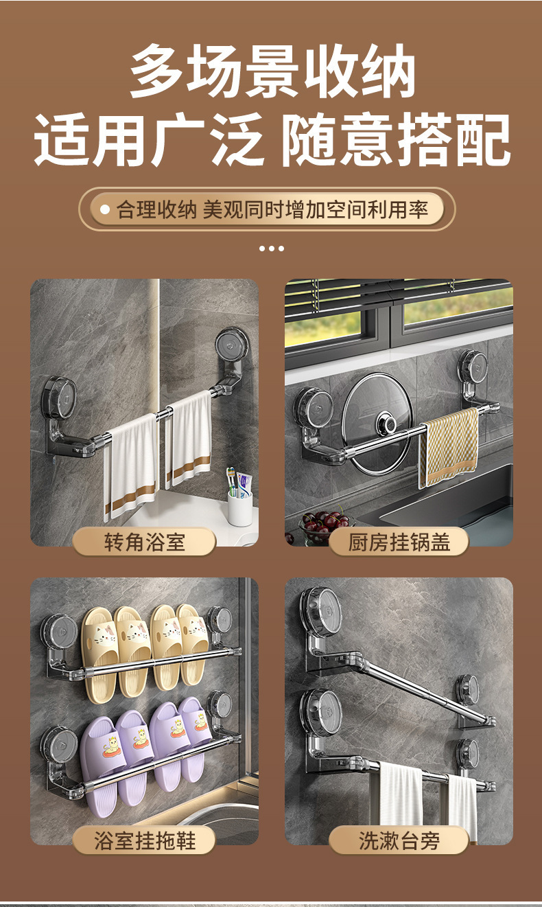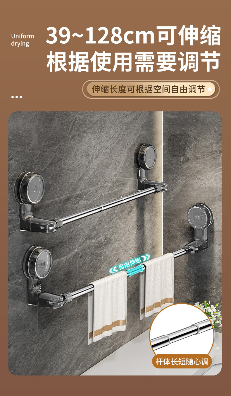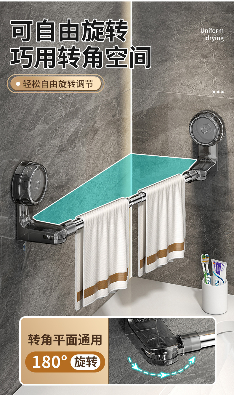 Выдвижная штанга для полотенцев с присосками, поворотный уголок, без отверстий, для хранения в ванной