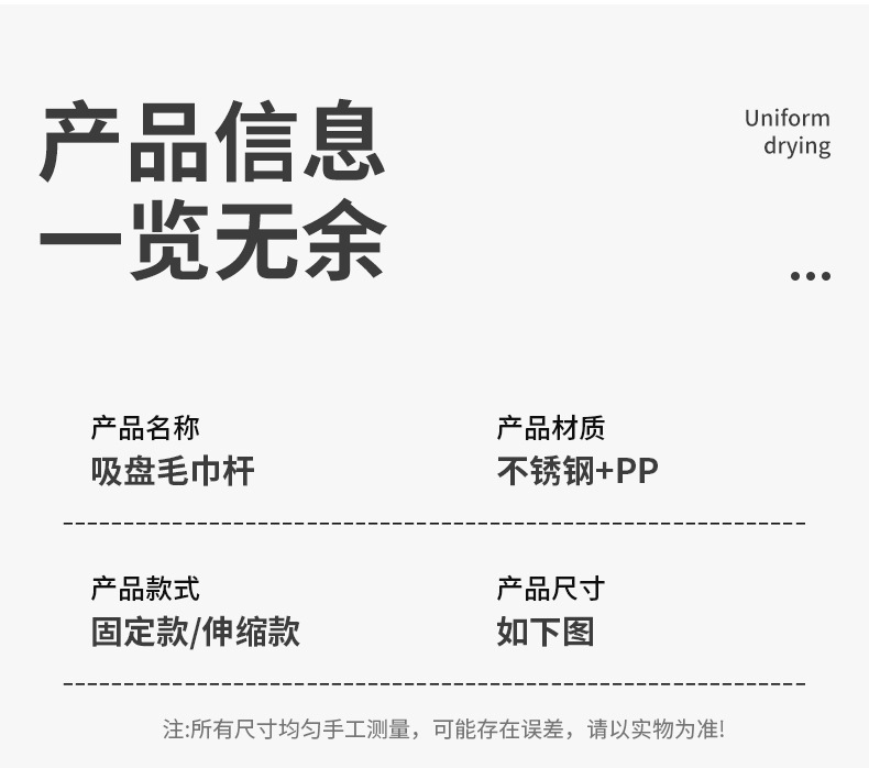 ![]() | Milky white towel rack [65~130cm] retractable | ¥4.5 / ≈ 54 ₽ | 998227 | 5938158055667 | |