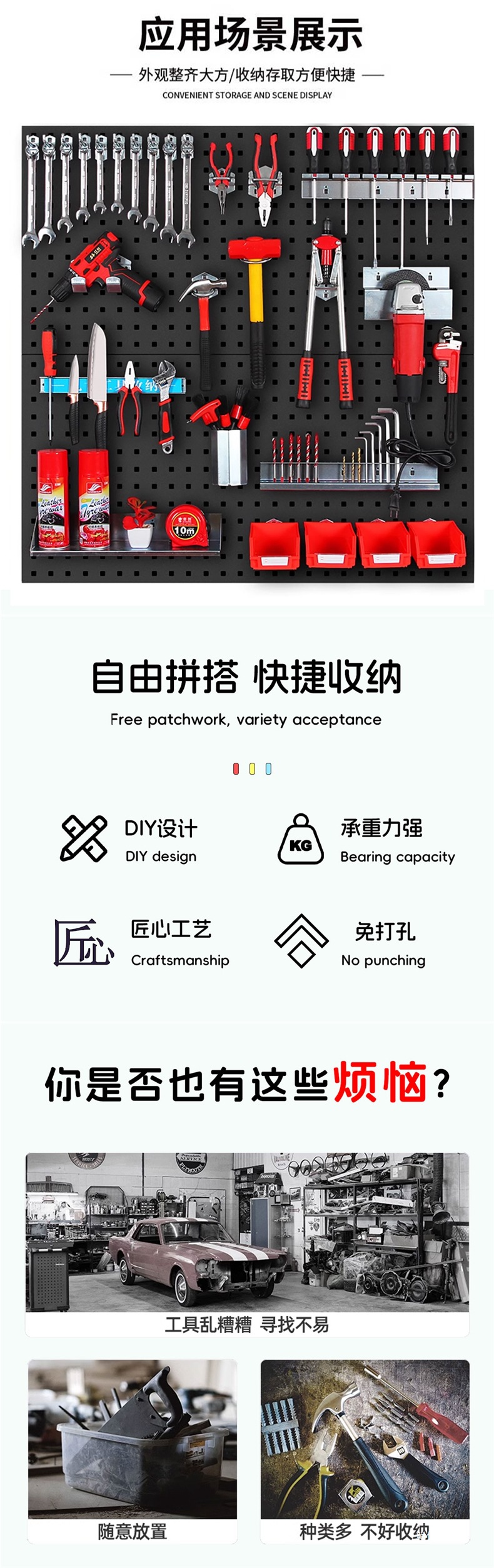 Плита с квадратными отверстиями, стеллаж для инструментов, настенный металлический стеллаж без пробивки, из нержавеющей стали